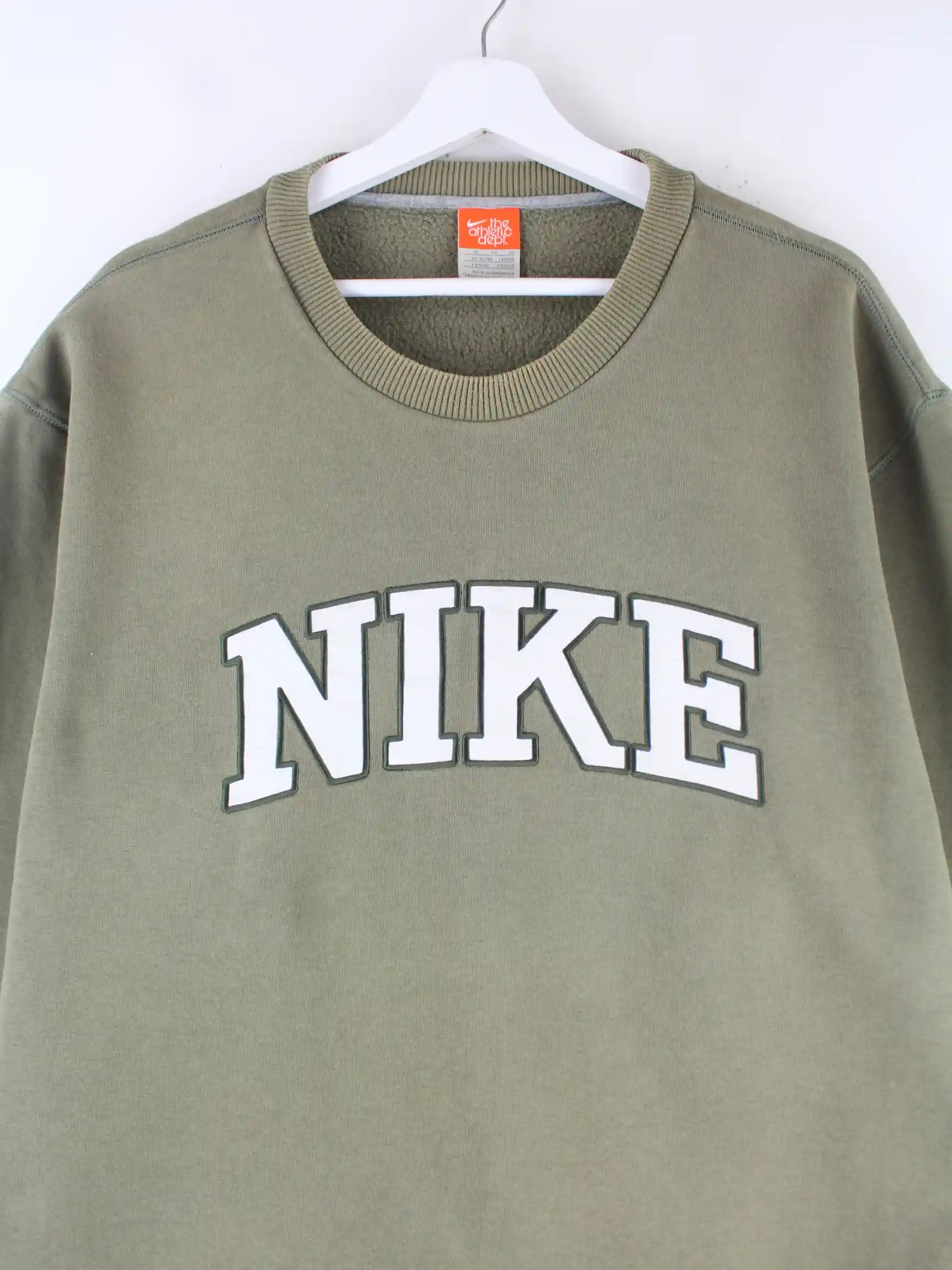 Grüner Sweater mit gesticktem Logo aus dem Hause Nike in Größe XL. Er ist aus einer Baumwollmischung produziert und in gutem Zustand bei uns vorrätig.