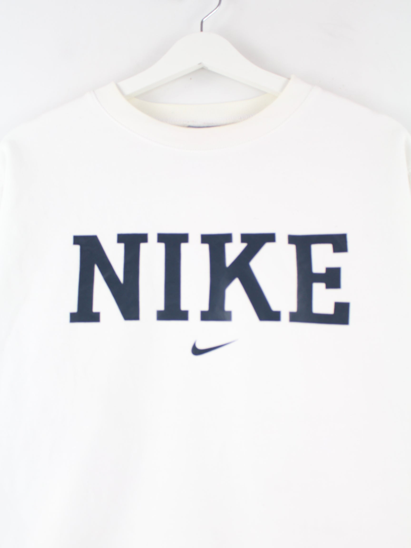 Sweater from Nike in size M. It is made from a cotton blend and is available in white. With a great spellout print.