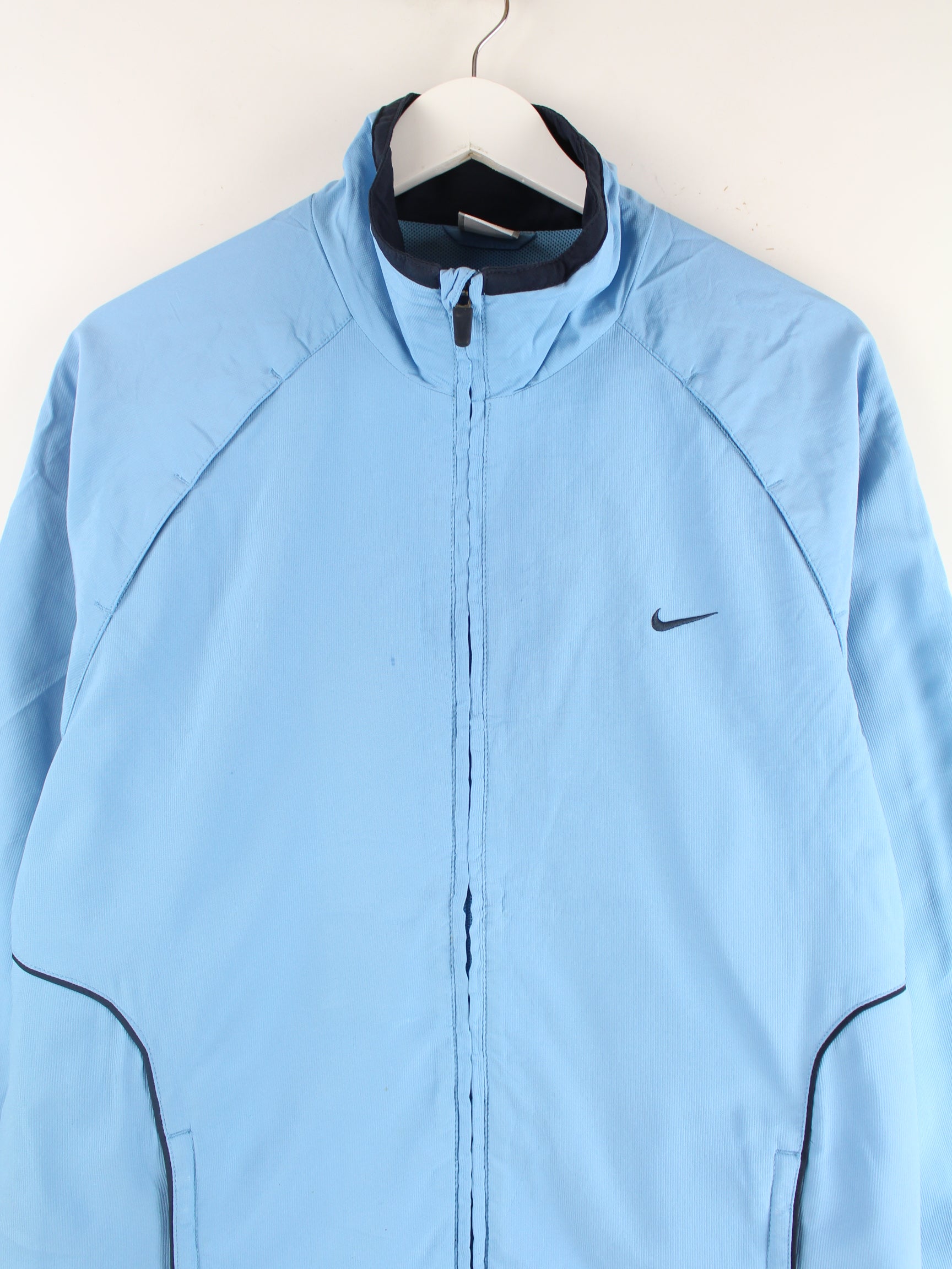 Trainingsjacke der Brand Nike in Größe L. Sie ist aus Synthetik gemacht und in Blau bei uns vorrätig.