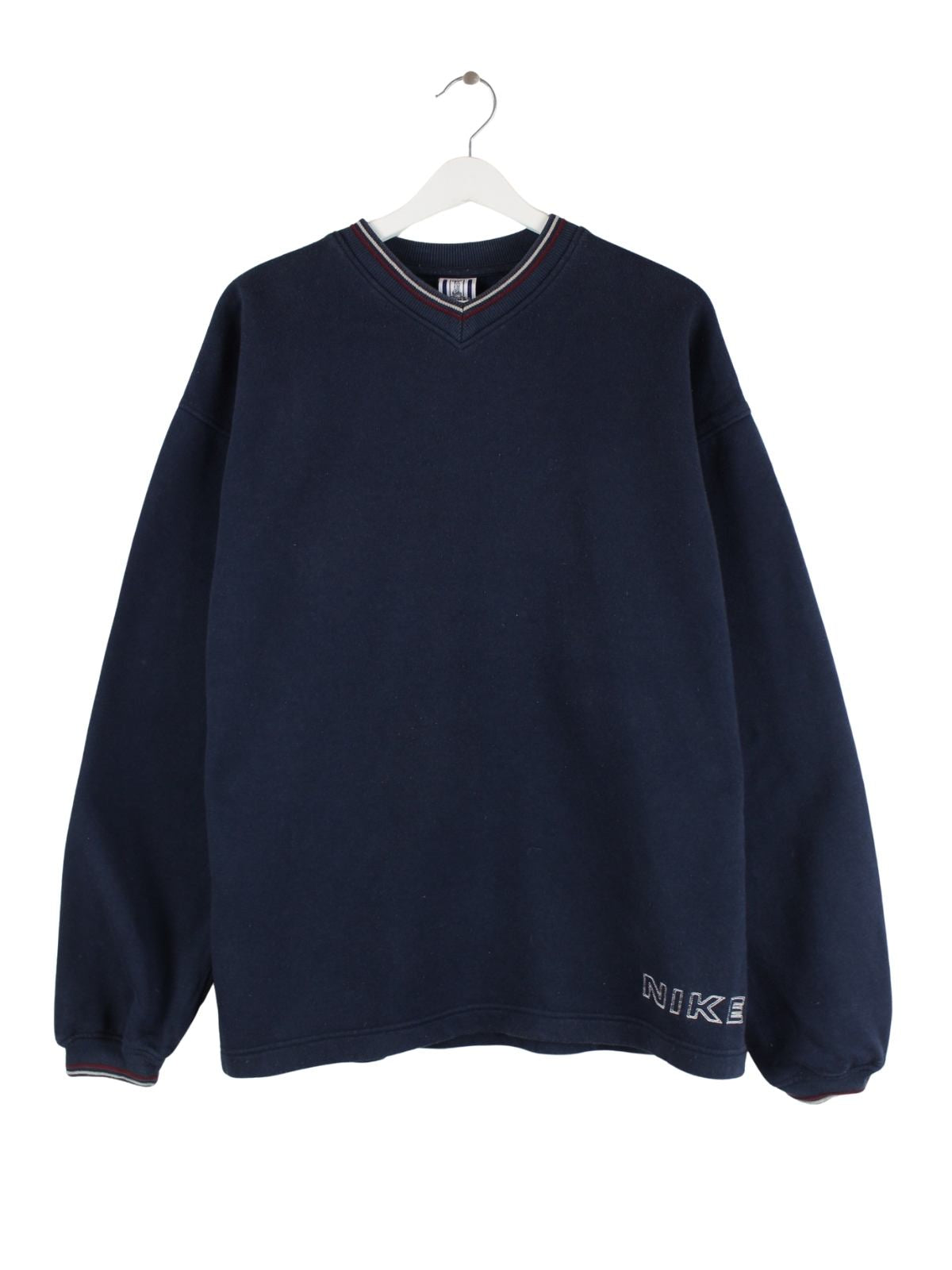 Blauer Sweater vom Brand Nike in Größe L. Er ist aus einer Baumwollmischung hergestellt und in sehr gutem Zustand im Bestand.
