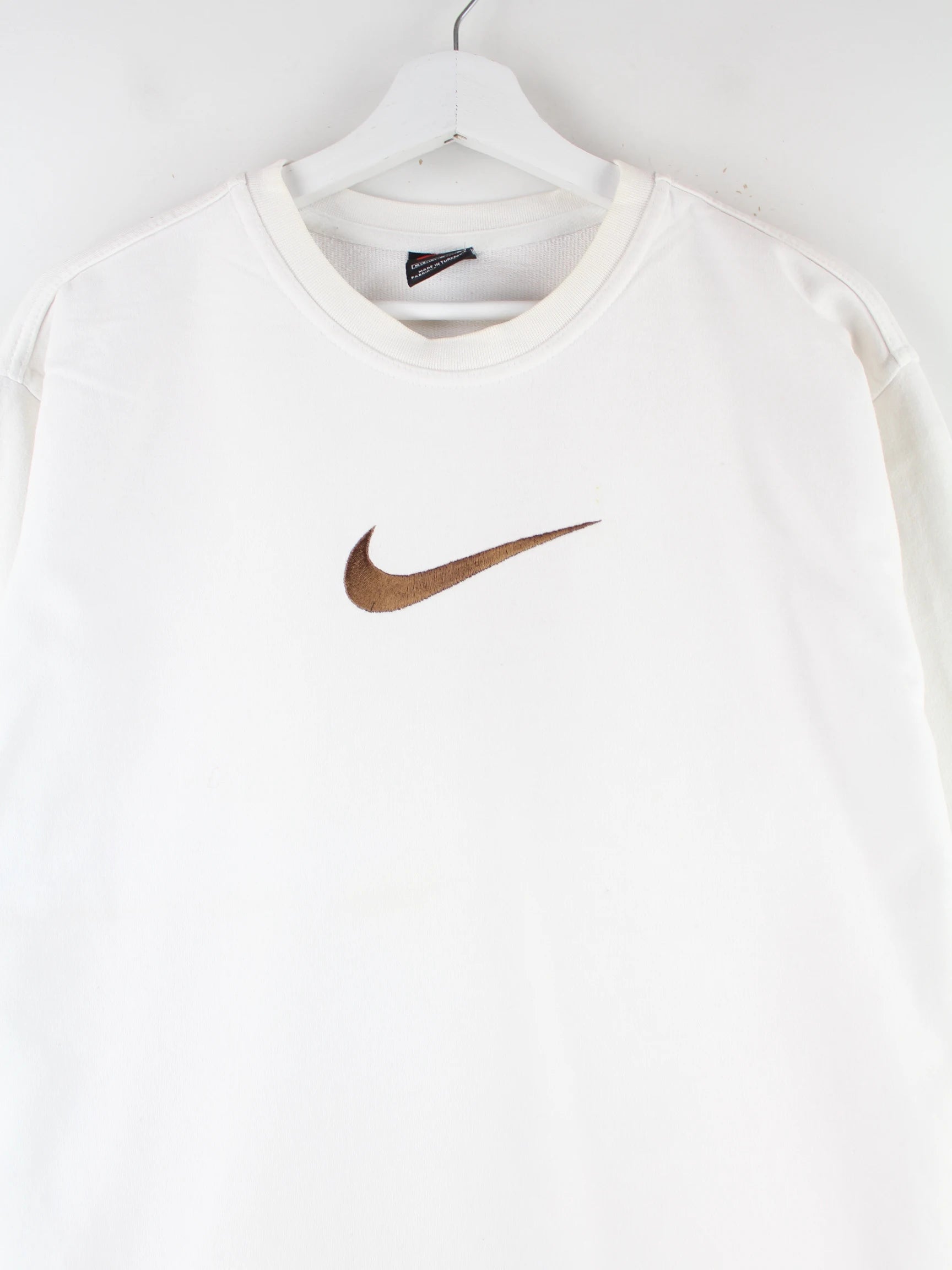 Nike 90s Vintage Big Swoosh Embroidered Sweater Weiß M