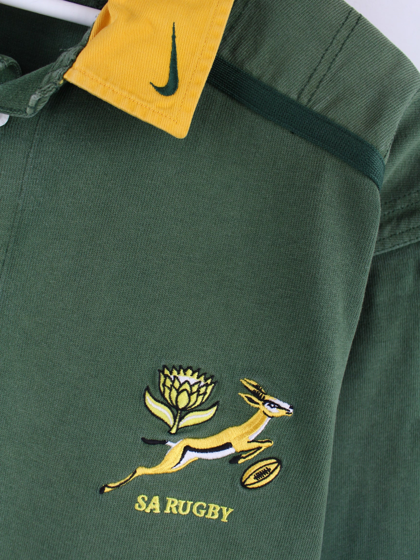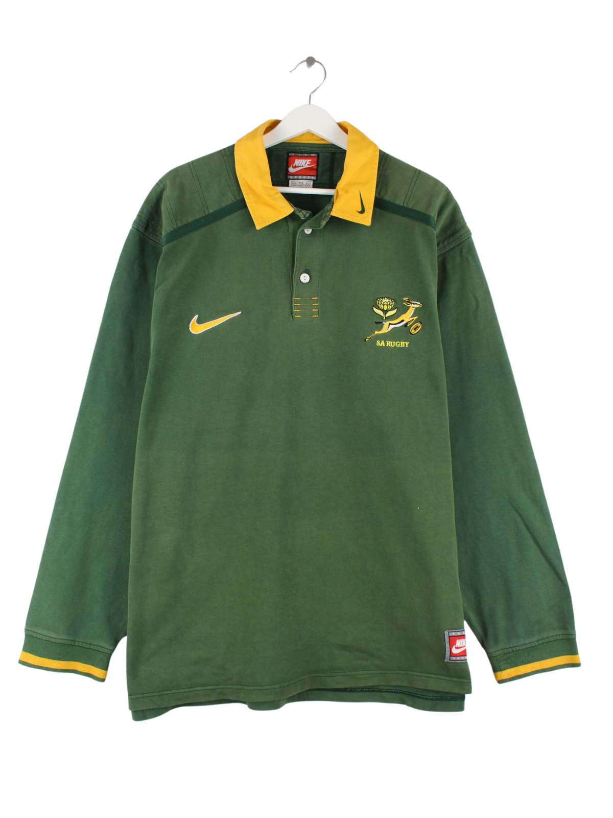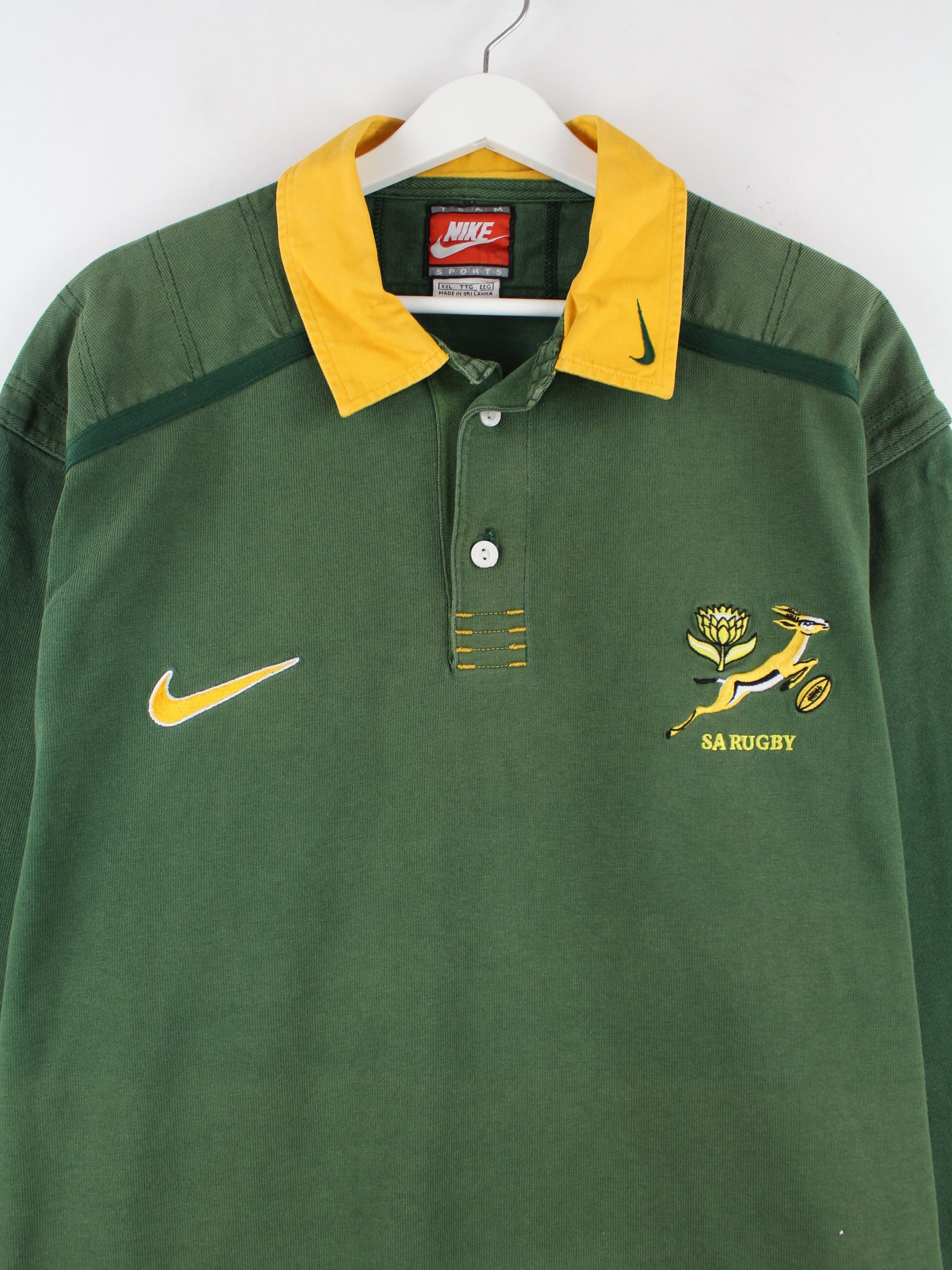 Nike 90s Vintage Embroidered SA Rugby Long Sleeve Polo Green XXL