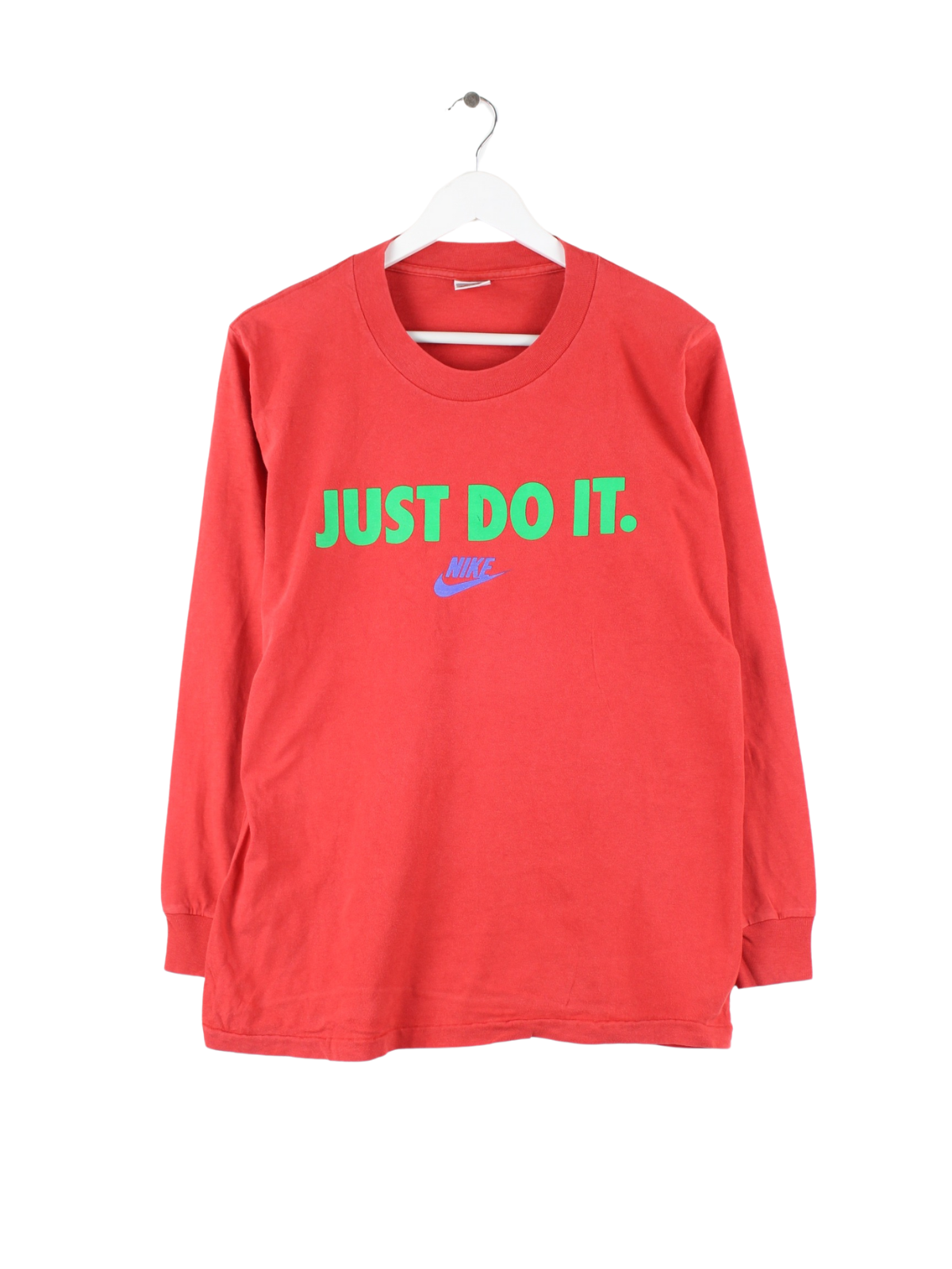 Nike sweatshirt in size M from the 90's. It is made of cotton and comes in red. With a chic tag print.
