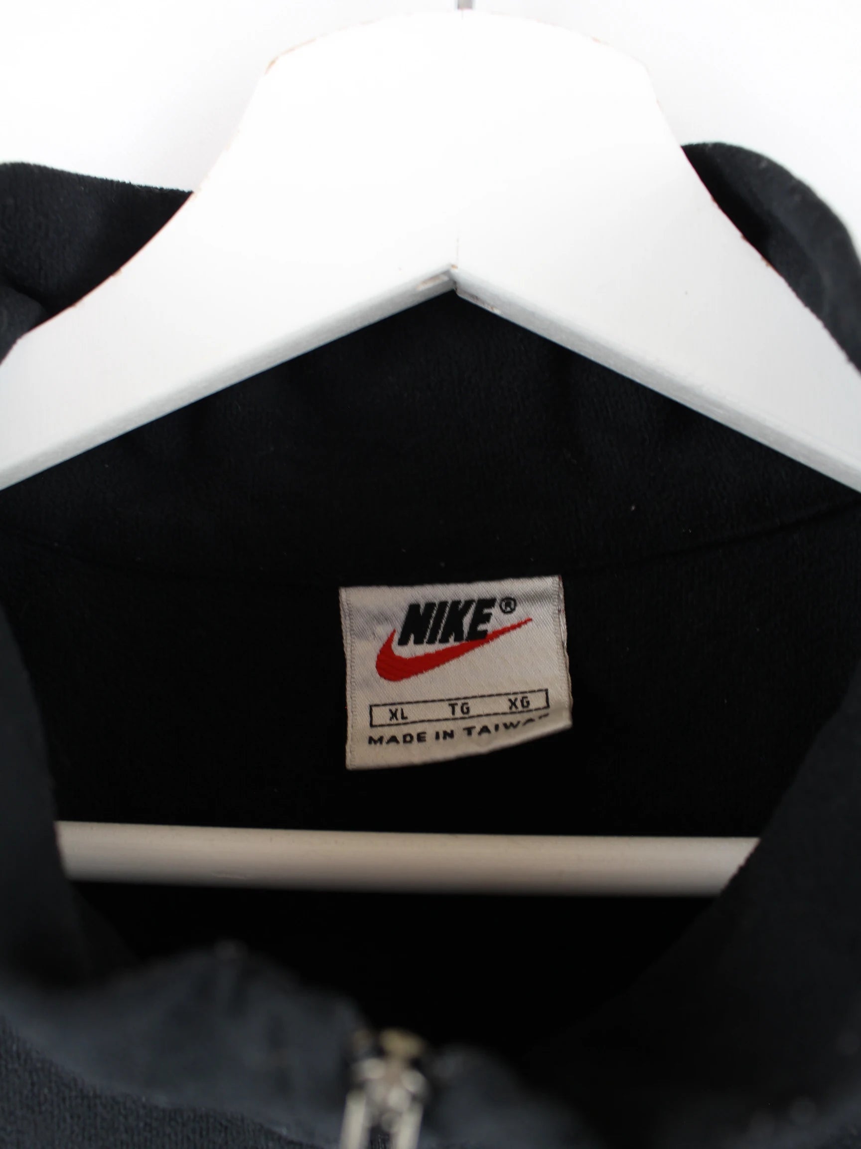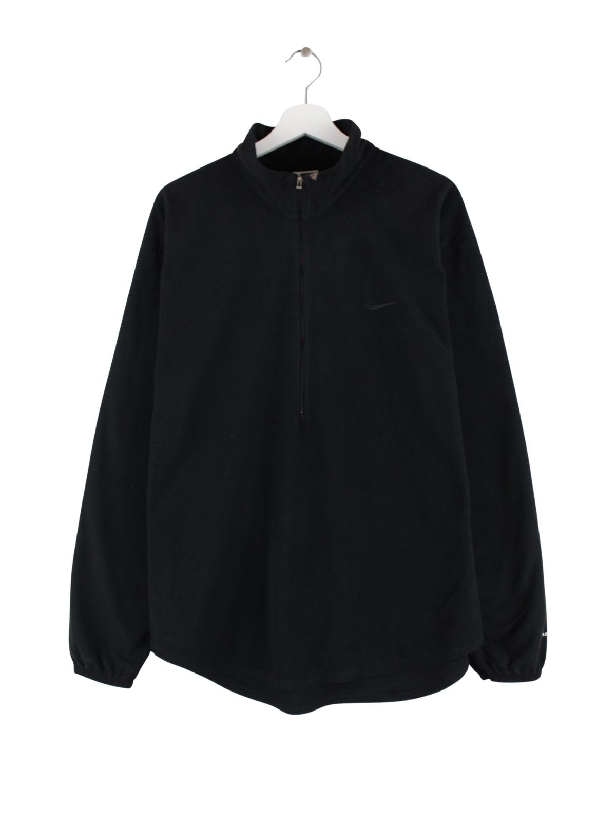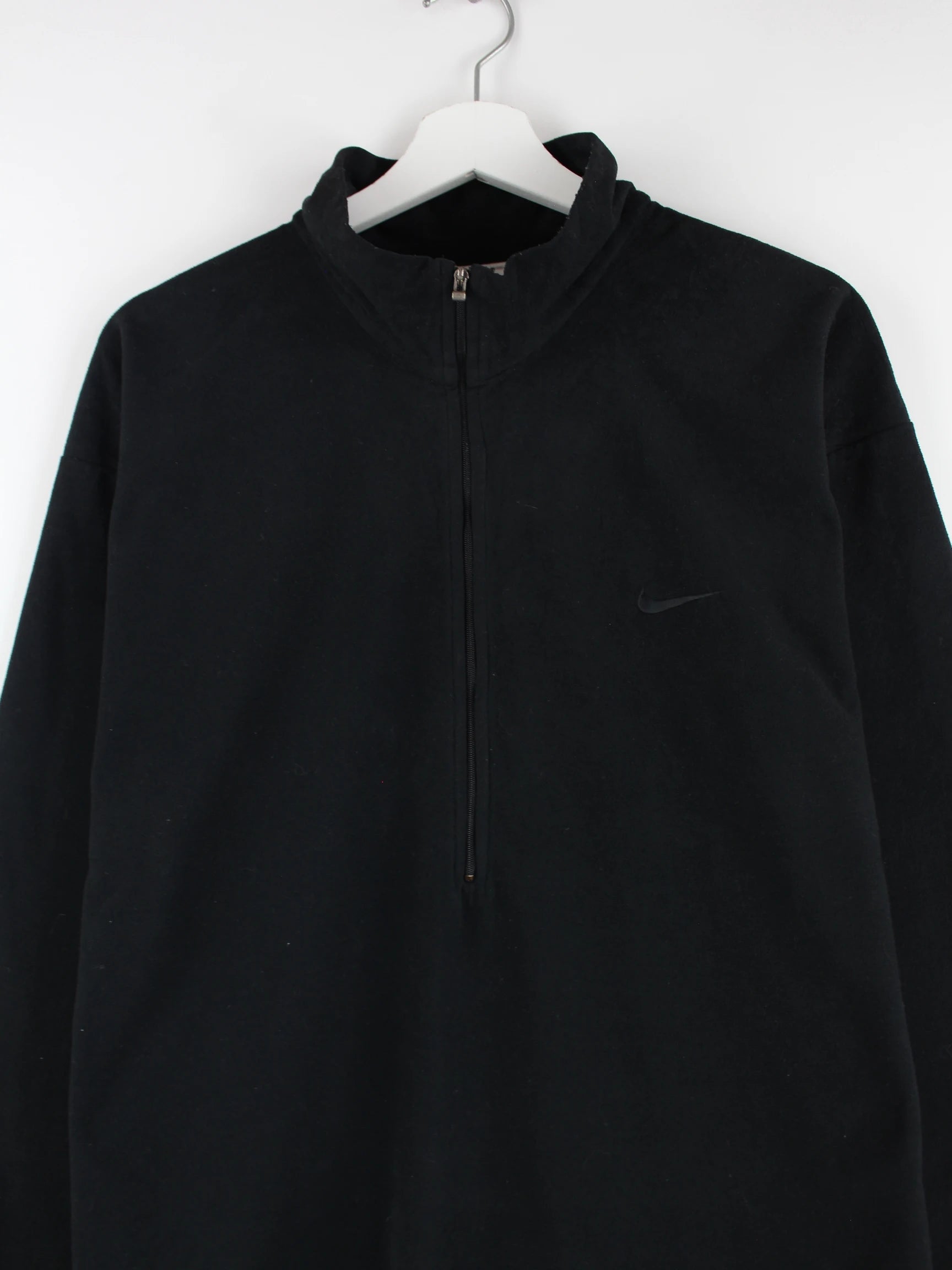 Leichte Jacke des Labels Nike mit halbem Reißverschluß in Größe XL aus den 90'ern. Sie ist aus behaglichem Fleece gemacht und in Schwarz auf Lager.