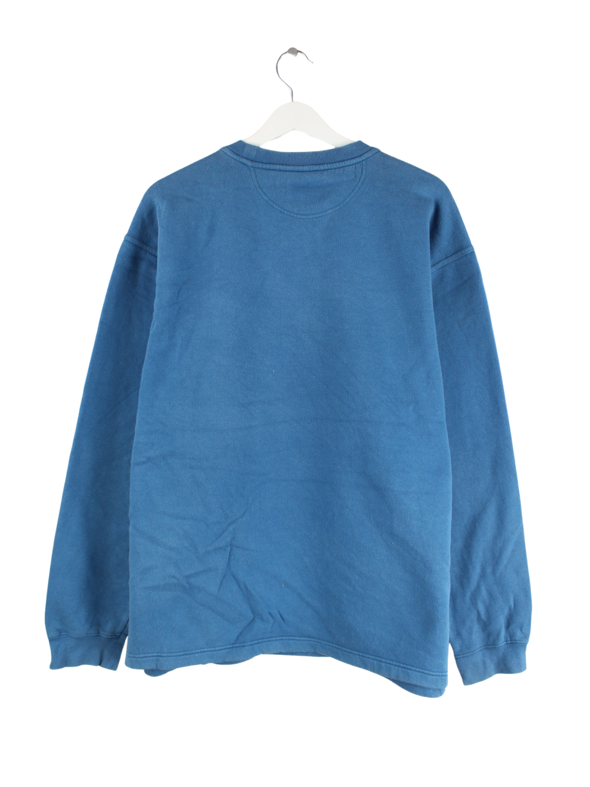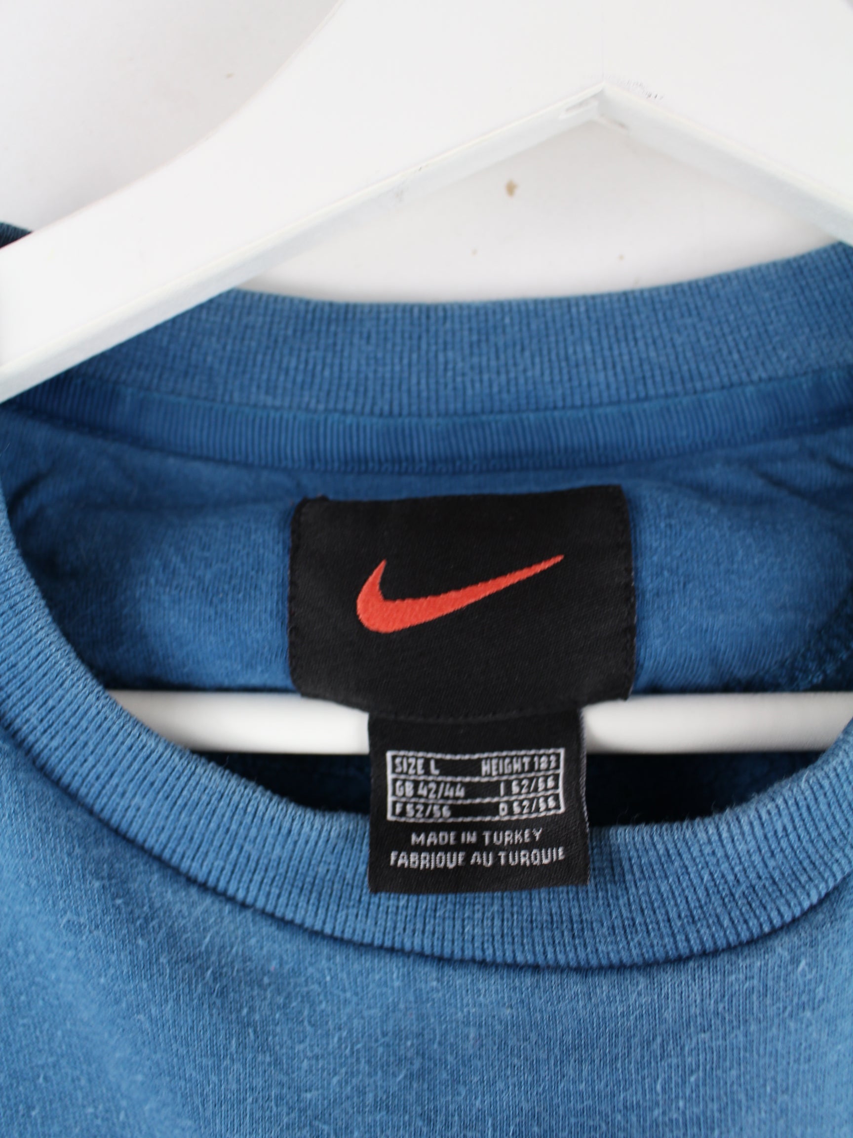 Blauer Sweater des Labels Nike aus den 90'ern in Größe L. Er ist aus einer Baumwollmischung und in sehr gutem Zustand bei uns vorrätig.