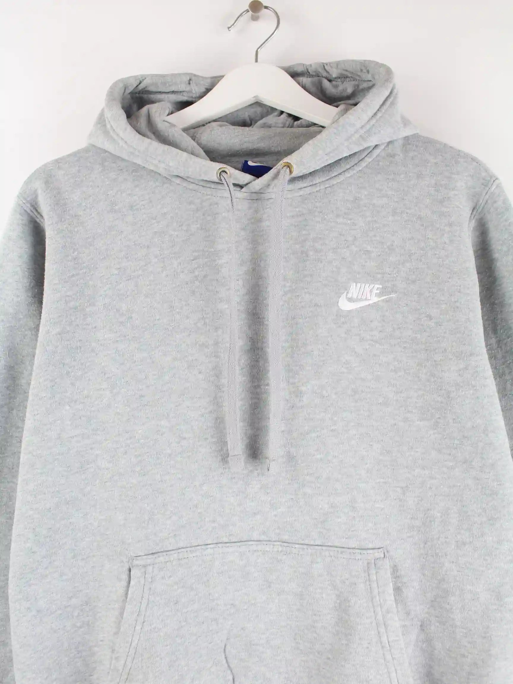 Grauer Basic Hoodie vom Label Nike in Größe S. Er ist aus einer Baumwollmischung gemacht und in sehr gutem Zustand bei uns zu bekommen.