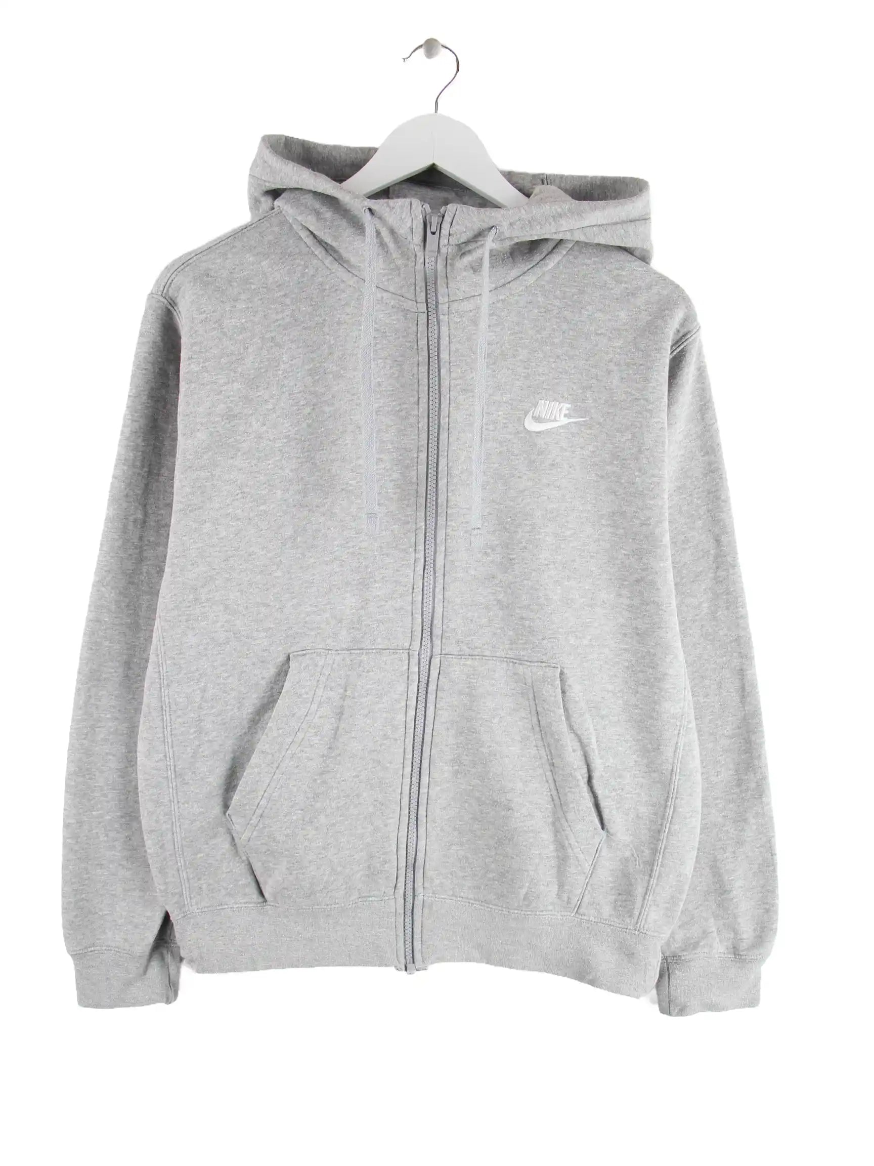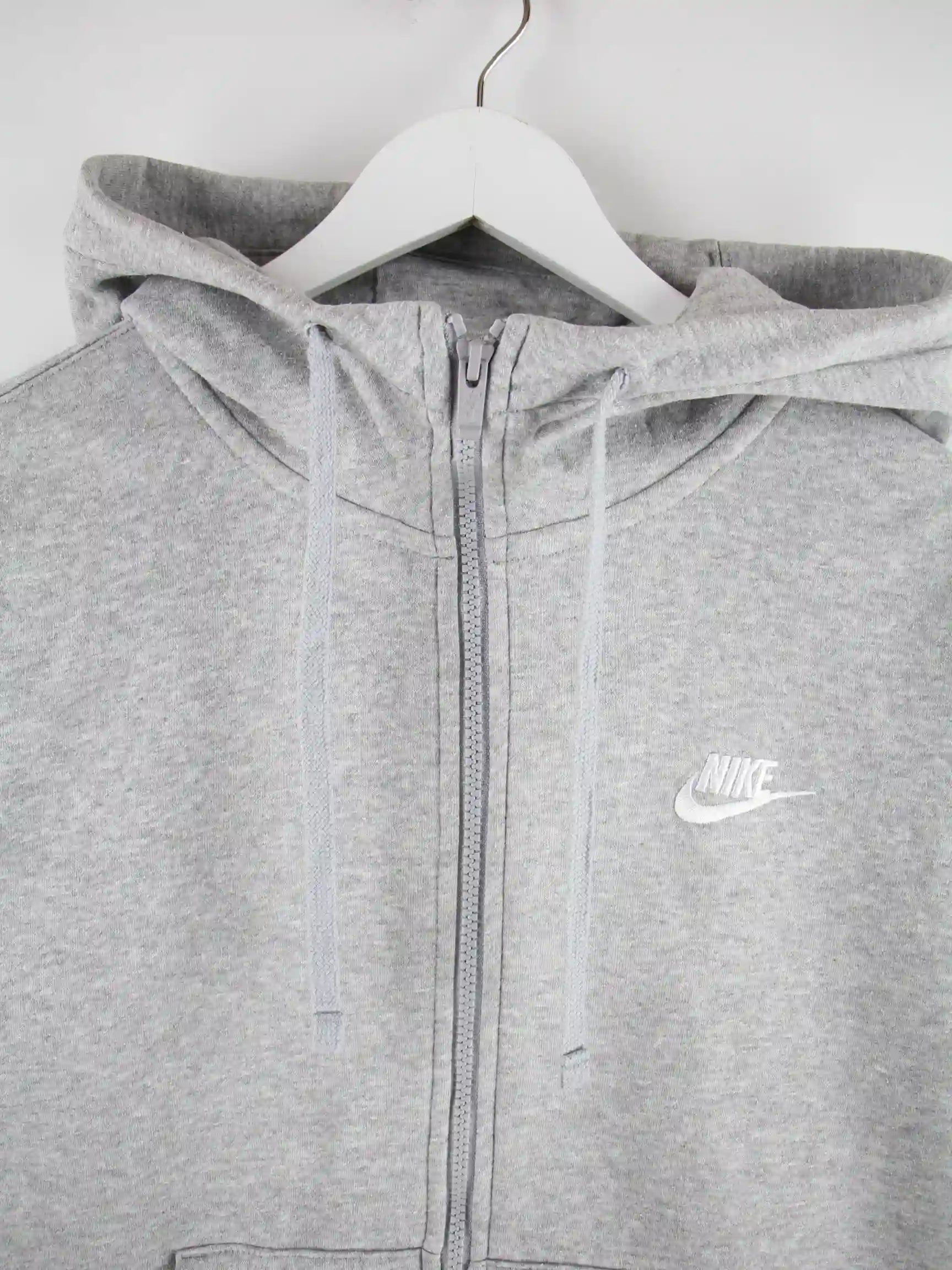 Grauer Hoodie mit Zip vom Label Nike in Größe XS. Er ist aus einer Baumwollmischung und in sehr gutem Zustand im Bestand.