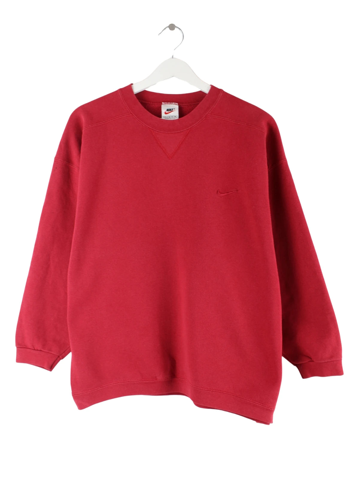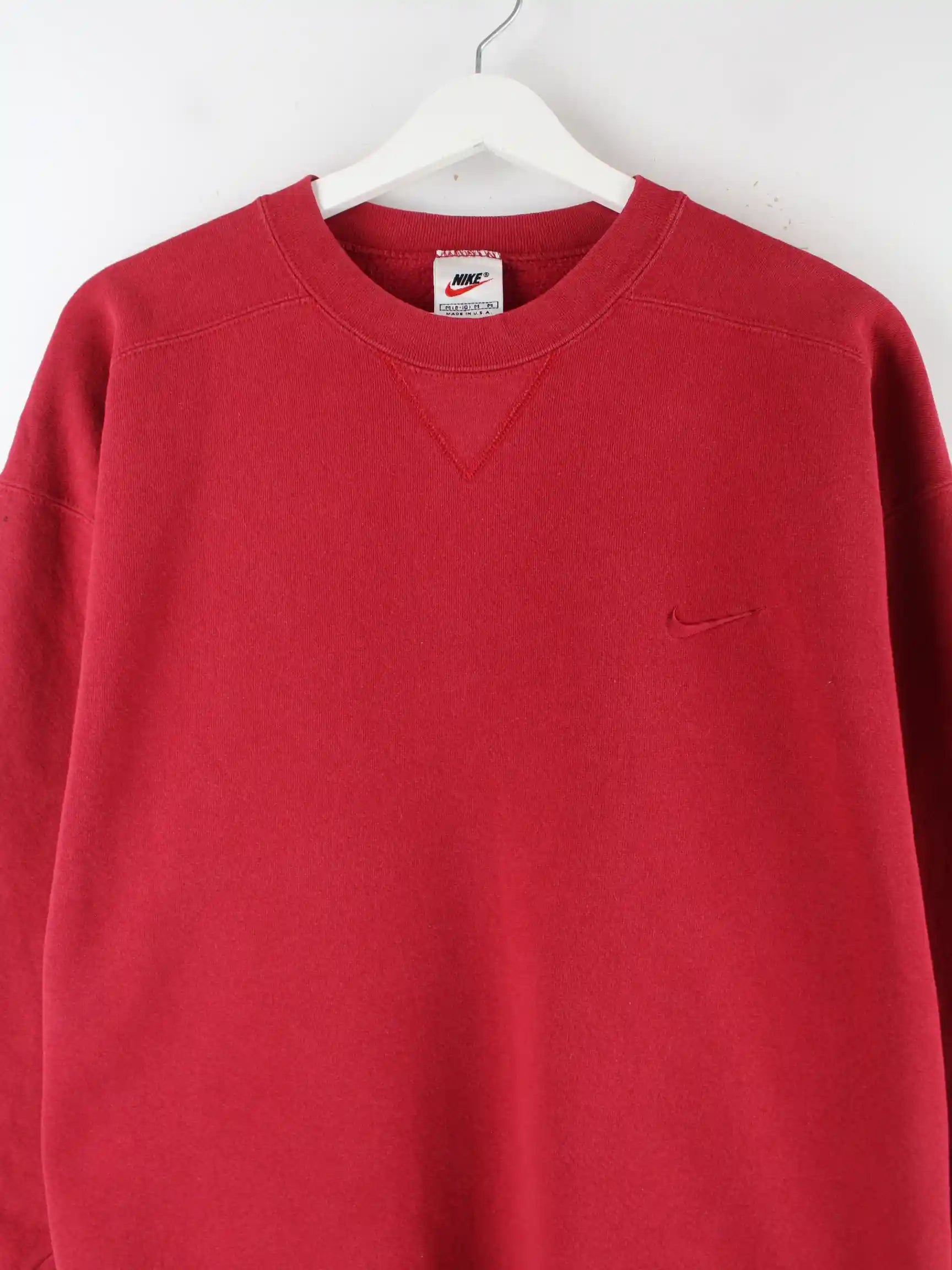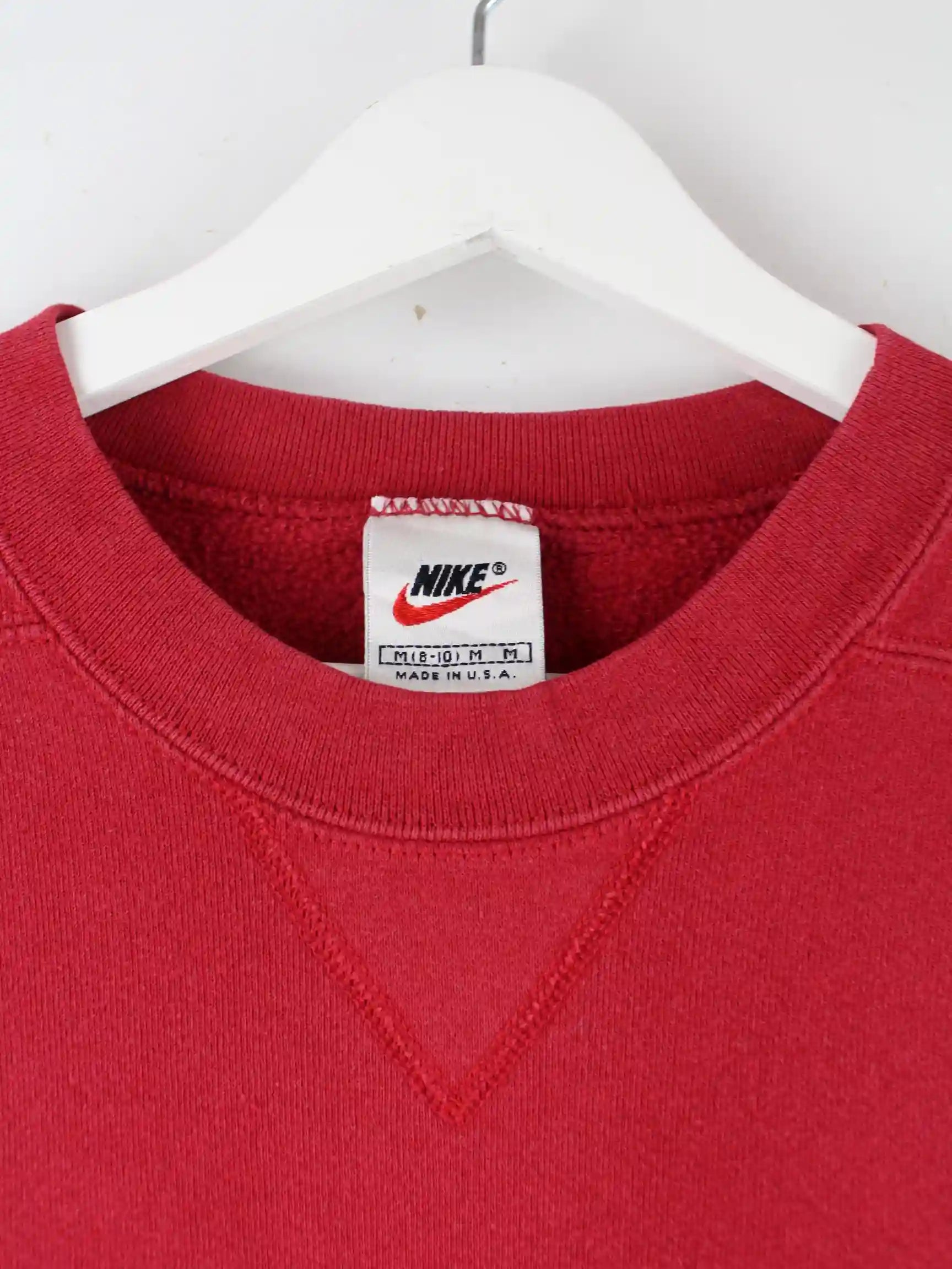 Sweater von Nike in Größe M aus den 90'ern. Er ist aus einer Baumwollmischung gefertigt und in Rot zu bekommen.