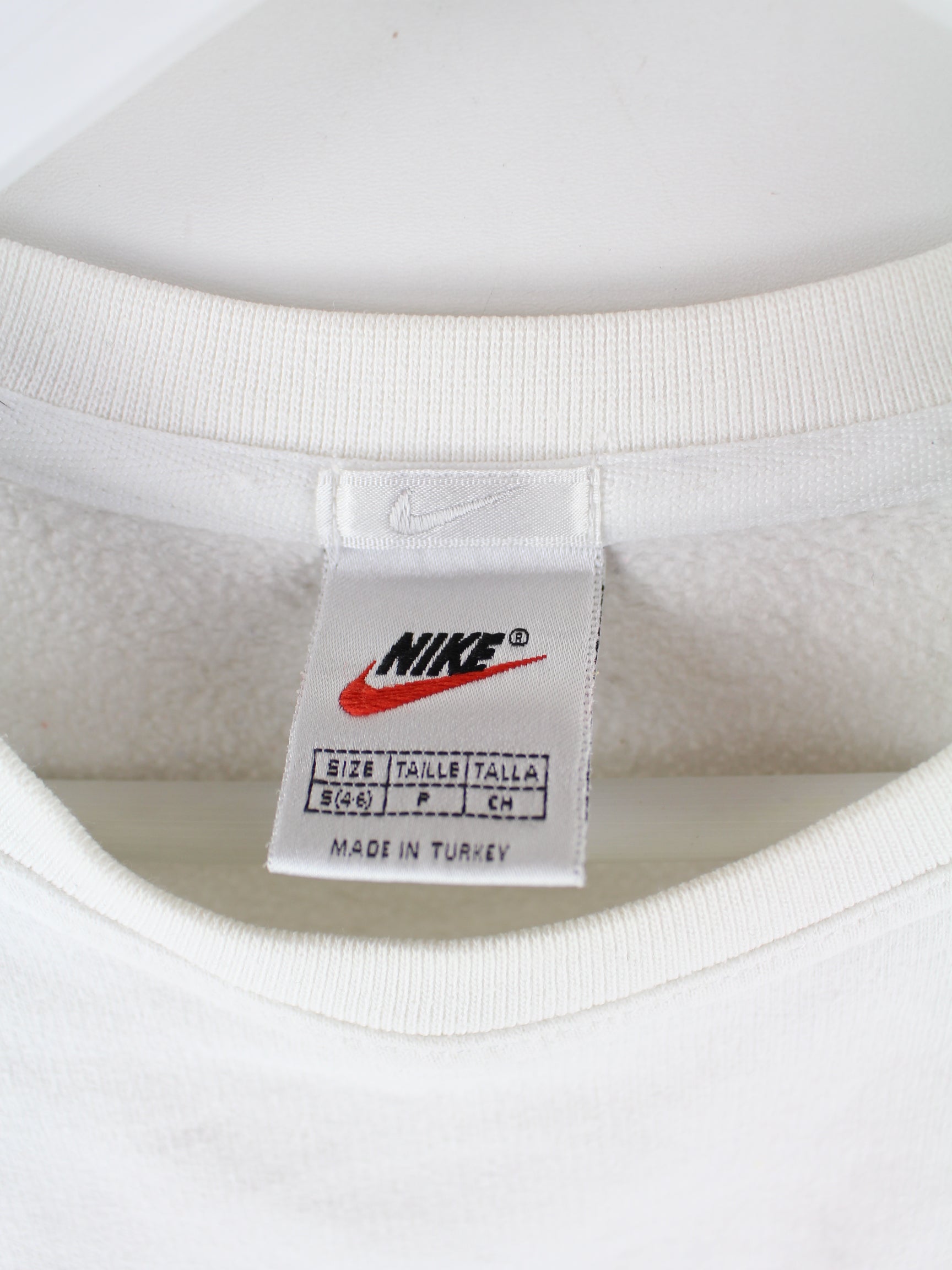 Sweater from the Nike label with embroidery in size S from the 90's. It is made from a cotton blend and is available in white.
