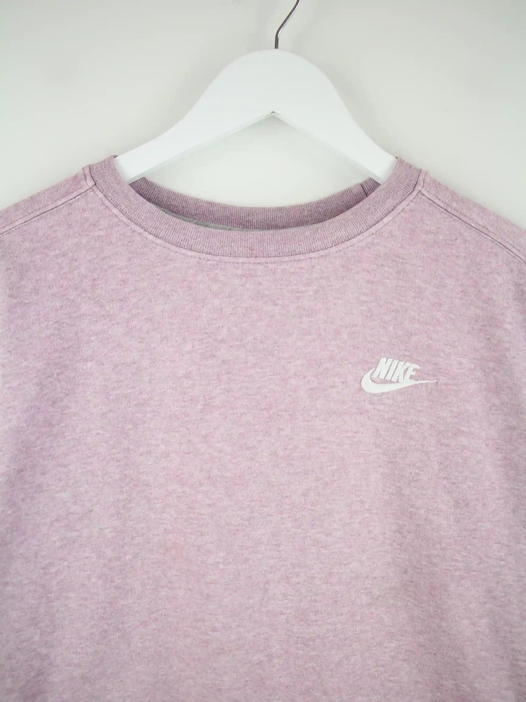 Lilafarbener Sweater vom Label Nike in Größe L. Er ist aus einer Baumwollmischung gemacht. Den Zustand würden wir als 'In Ordnung' bezeichnen (vergl. Bilder).