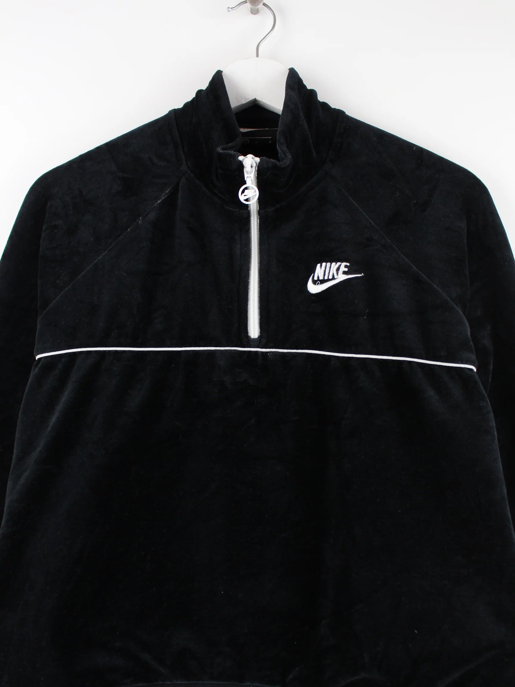 Nike Damen Velour Half Zip Sweater Schwarz L