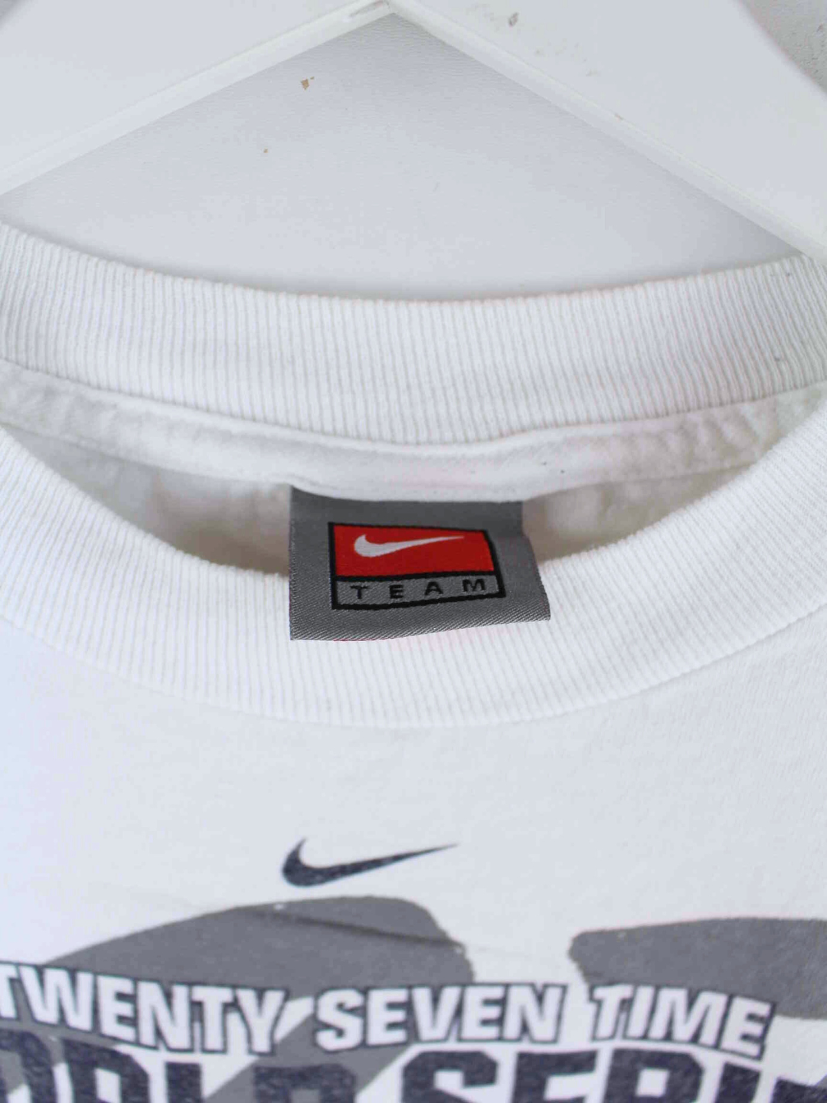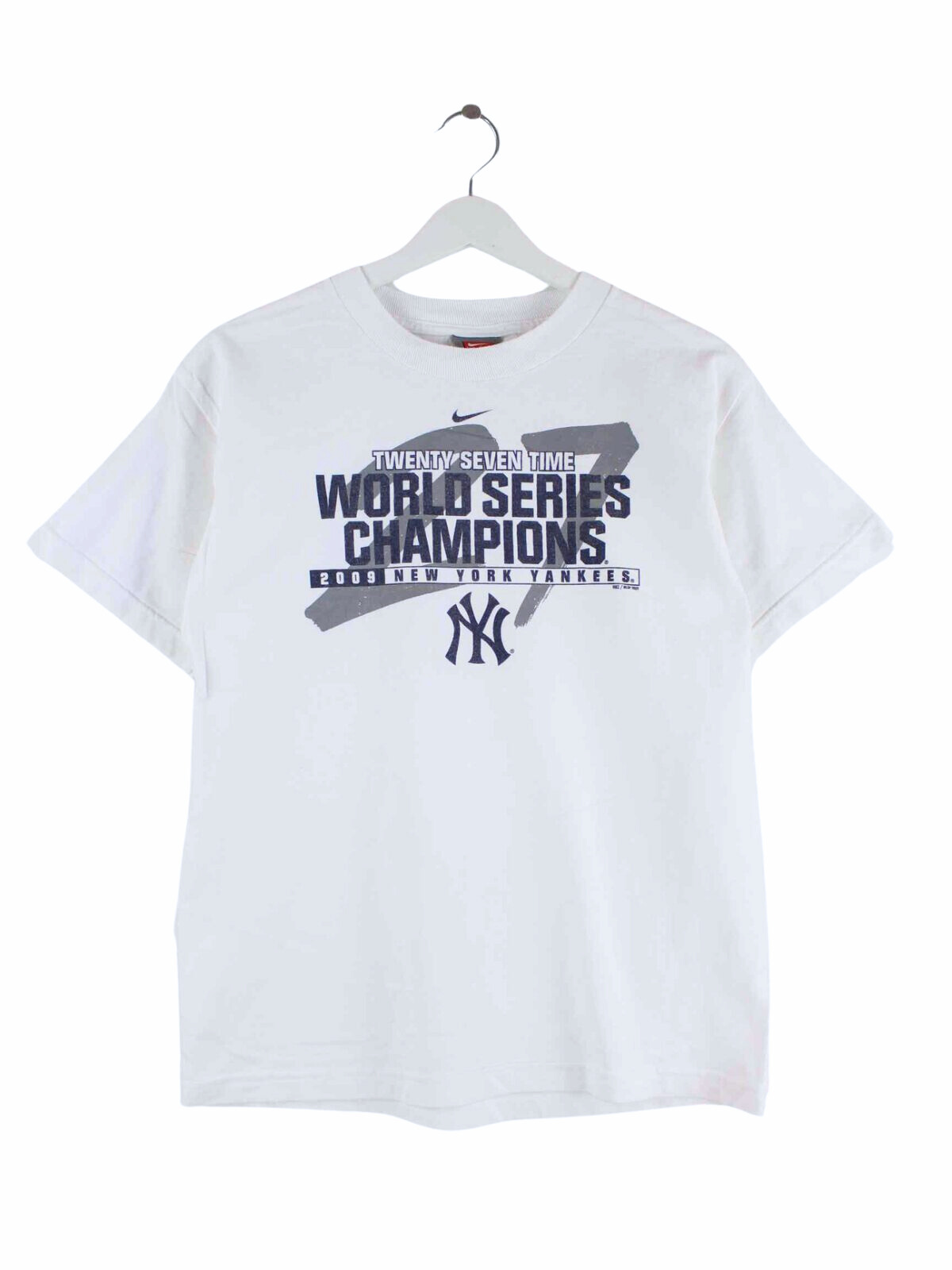 T-shirt from Nike in size S. It is made of cotton and in stock in white. With a beautiful Yankees print.