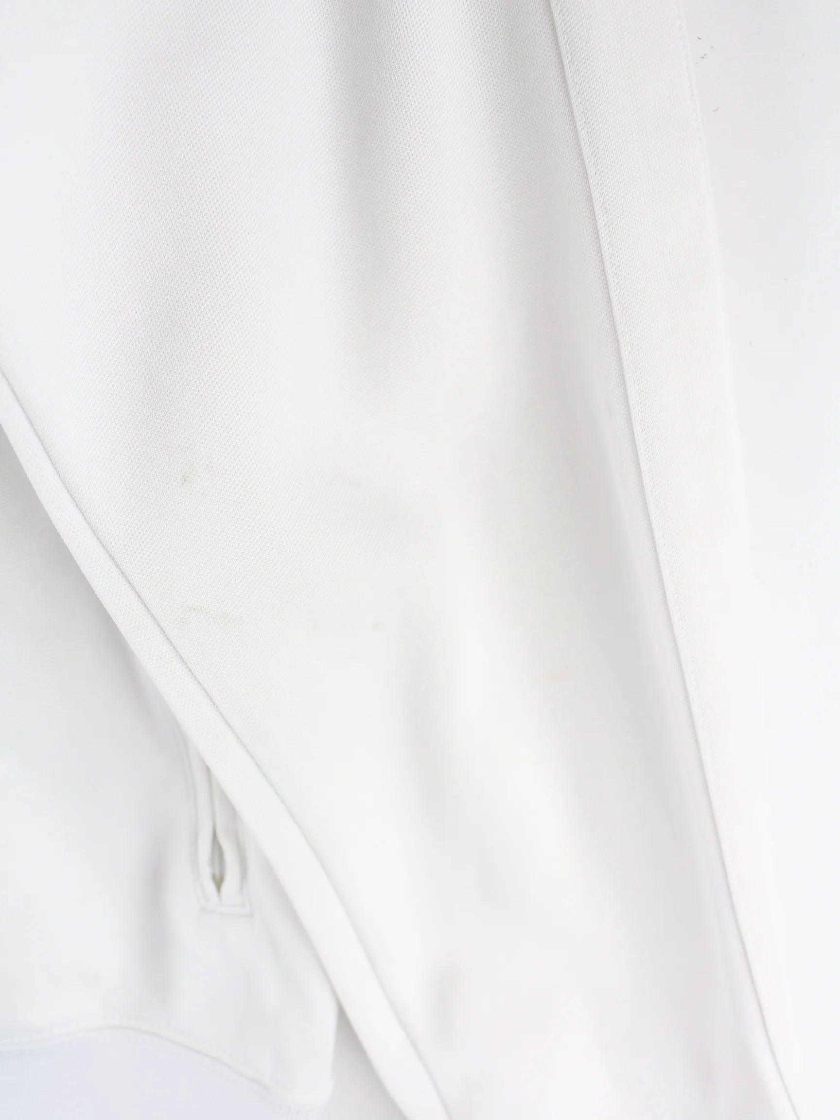 Trainingsjacke der Marke Nike mit gestickten Motiven in Größe L. Sie ist aus Synthetik gefertigt und in Weiß zu haben.