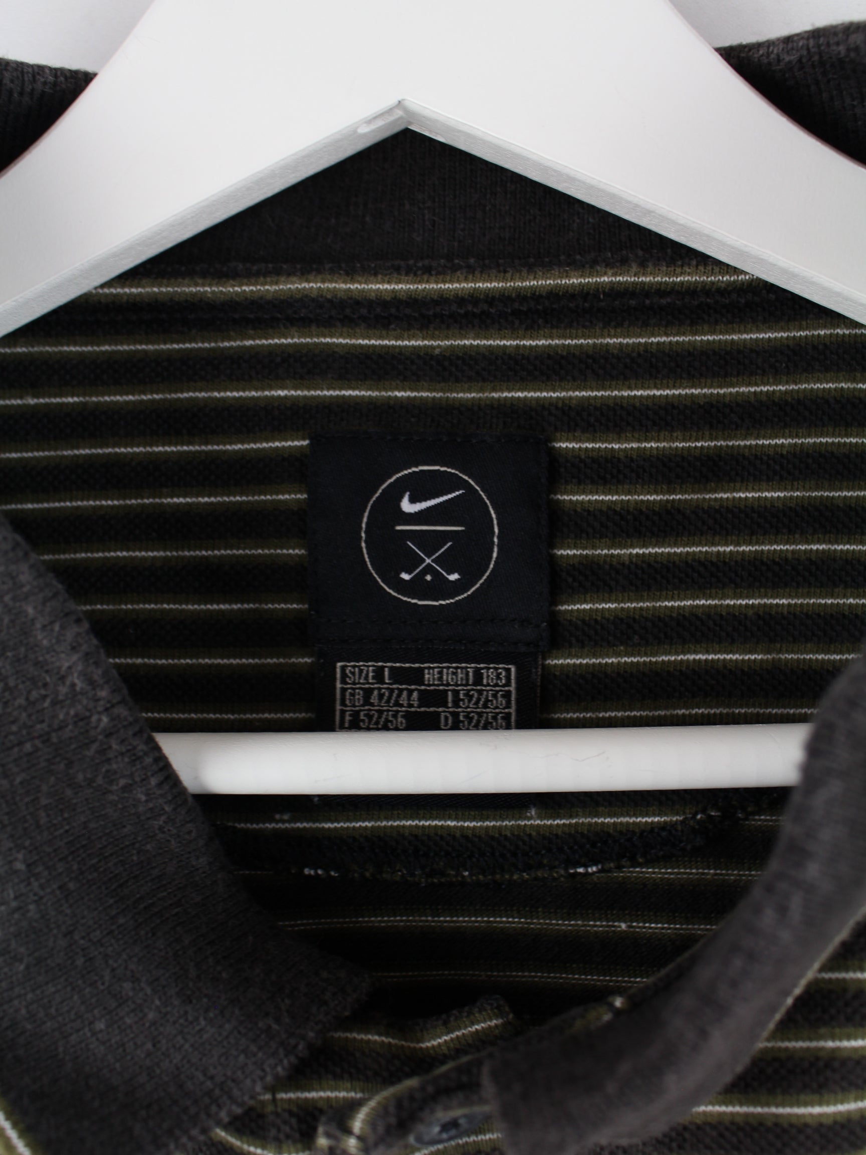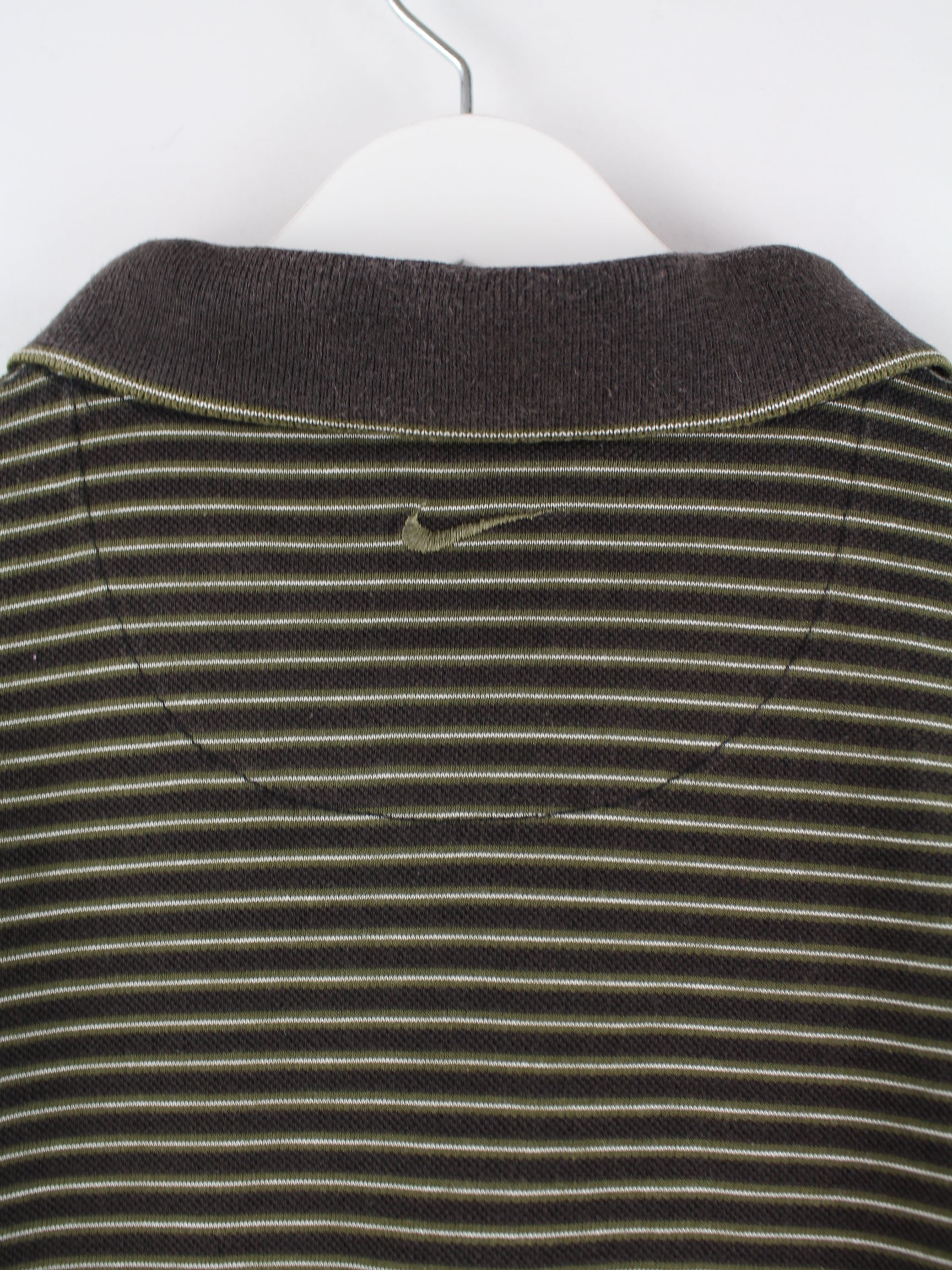 Braunes Poloshirt der Marke Nike in Größe L. Es ist aus Baumwolle und in sehr gutem Zustand in Stock.