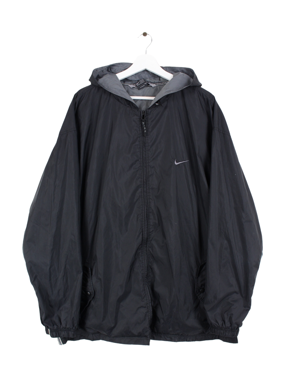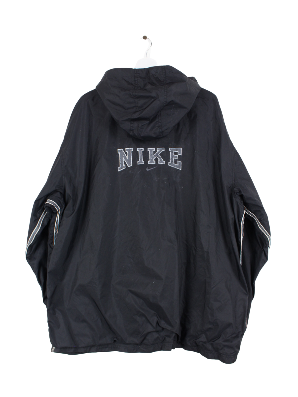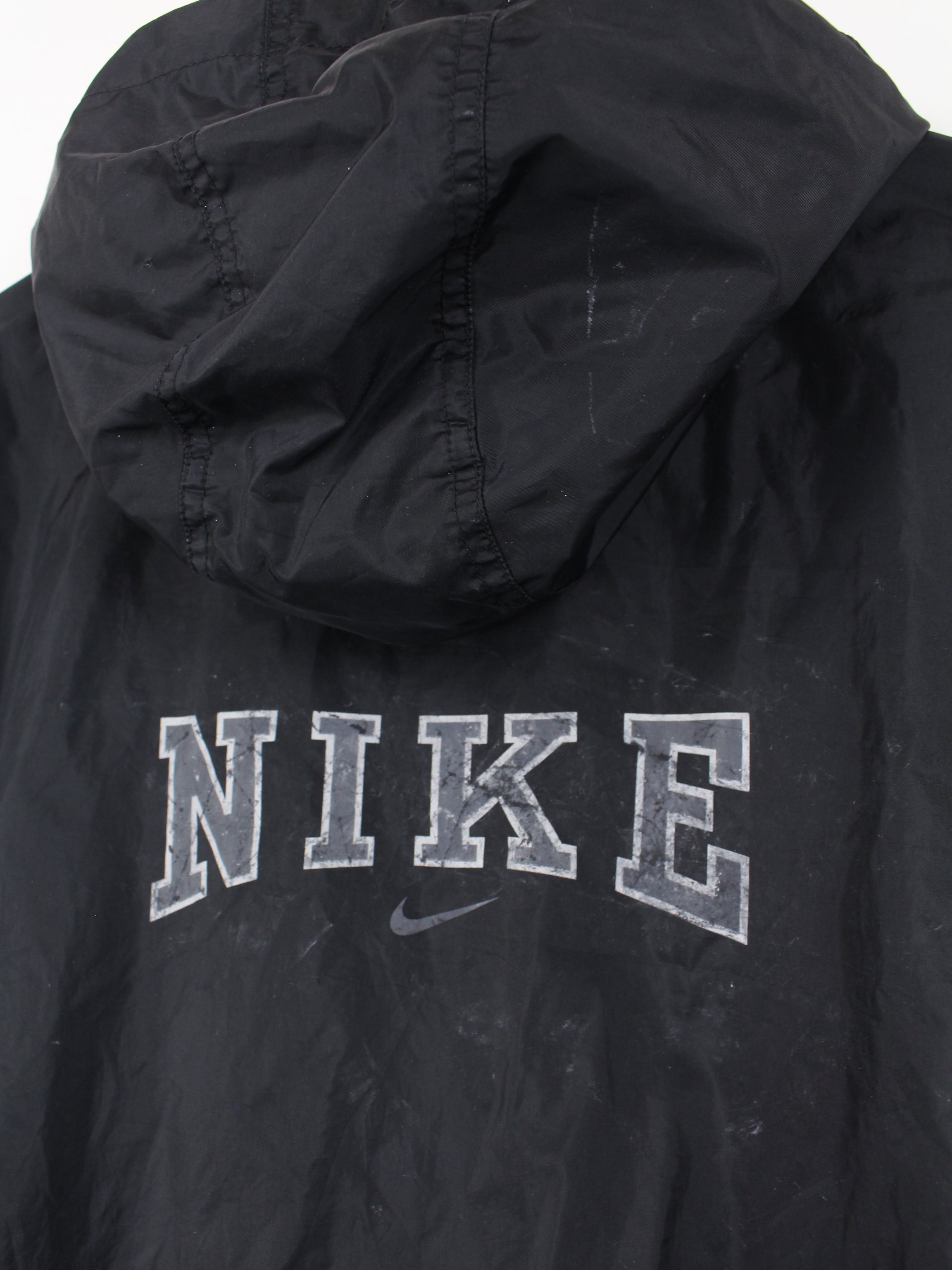 Black Nike wind jacket with a large spellout on the back.