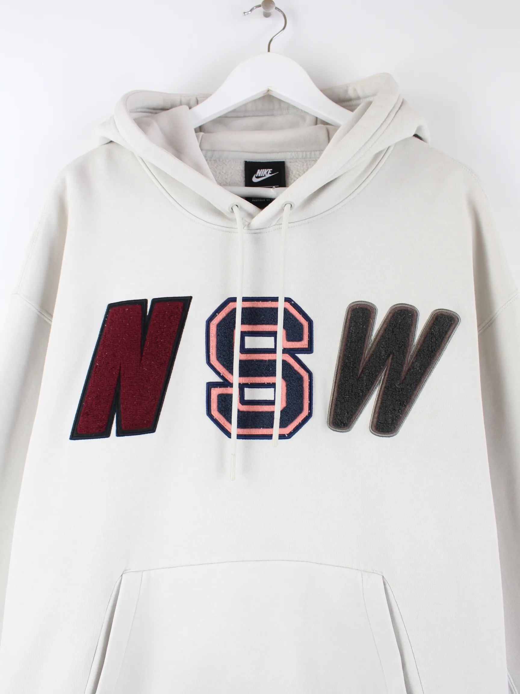 Hoodie aus dem Hause Nike in Größe L. Er ist aus einer Baumwollmischung hergestellt und in Beige in Stock.