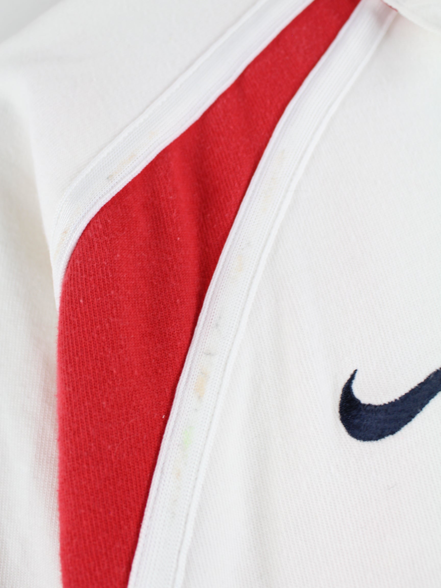White polo shirt with embroidered logo from Nike from the early 2000s in size L. It is made of cotton. We would describe the condition as 'fine' (see pictures).