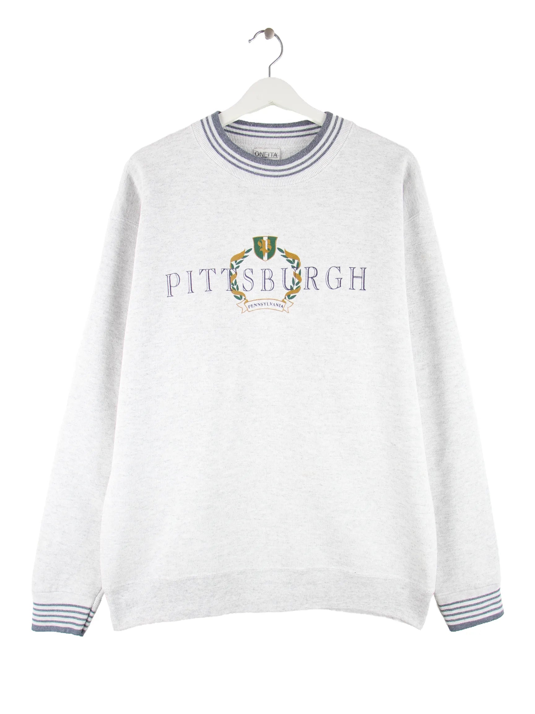 Oneita 90s Vintage Pittsburgh Pennsylvania Sweater Grau XL