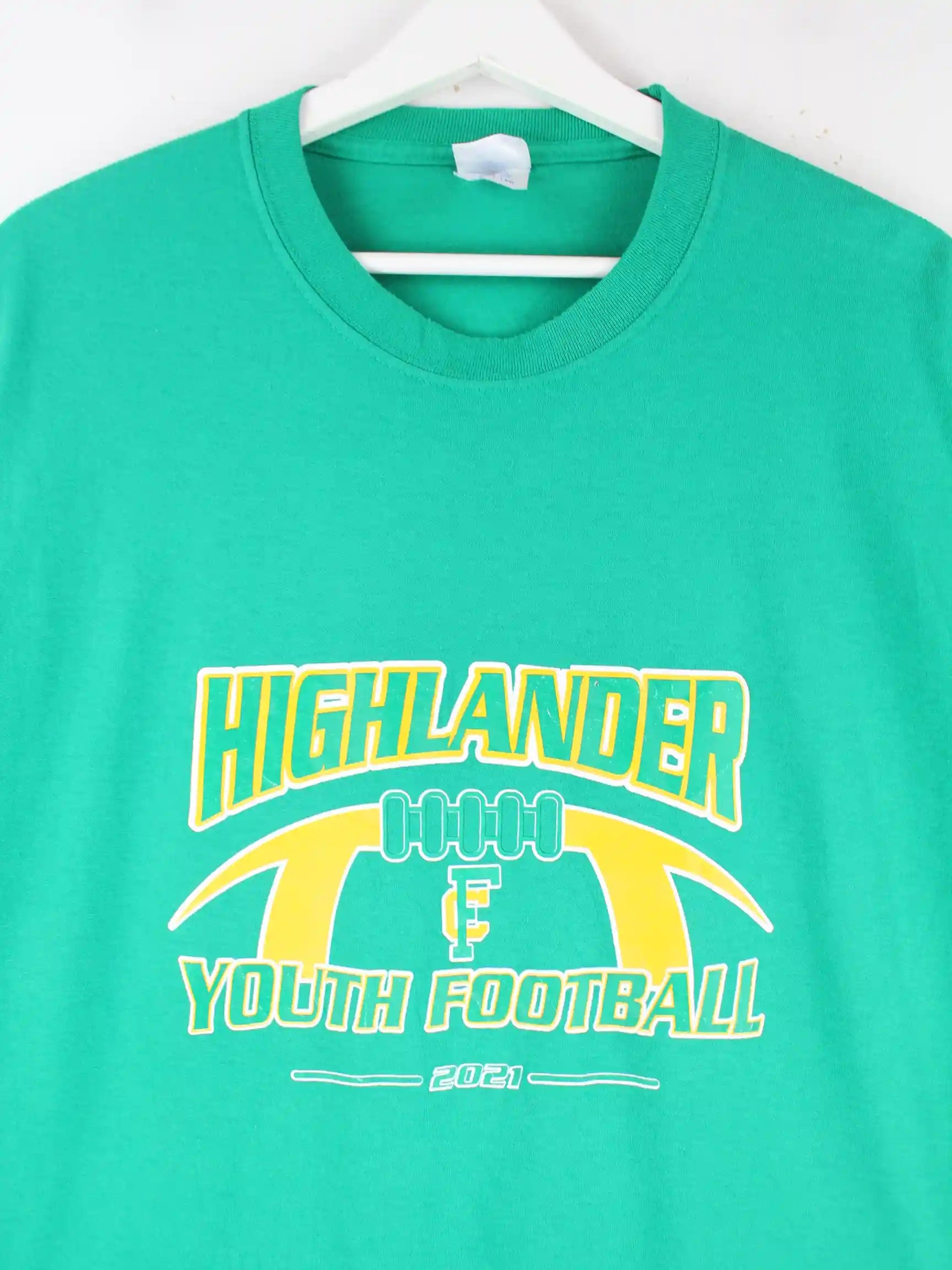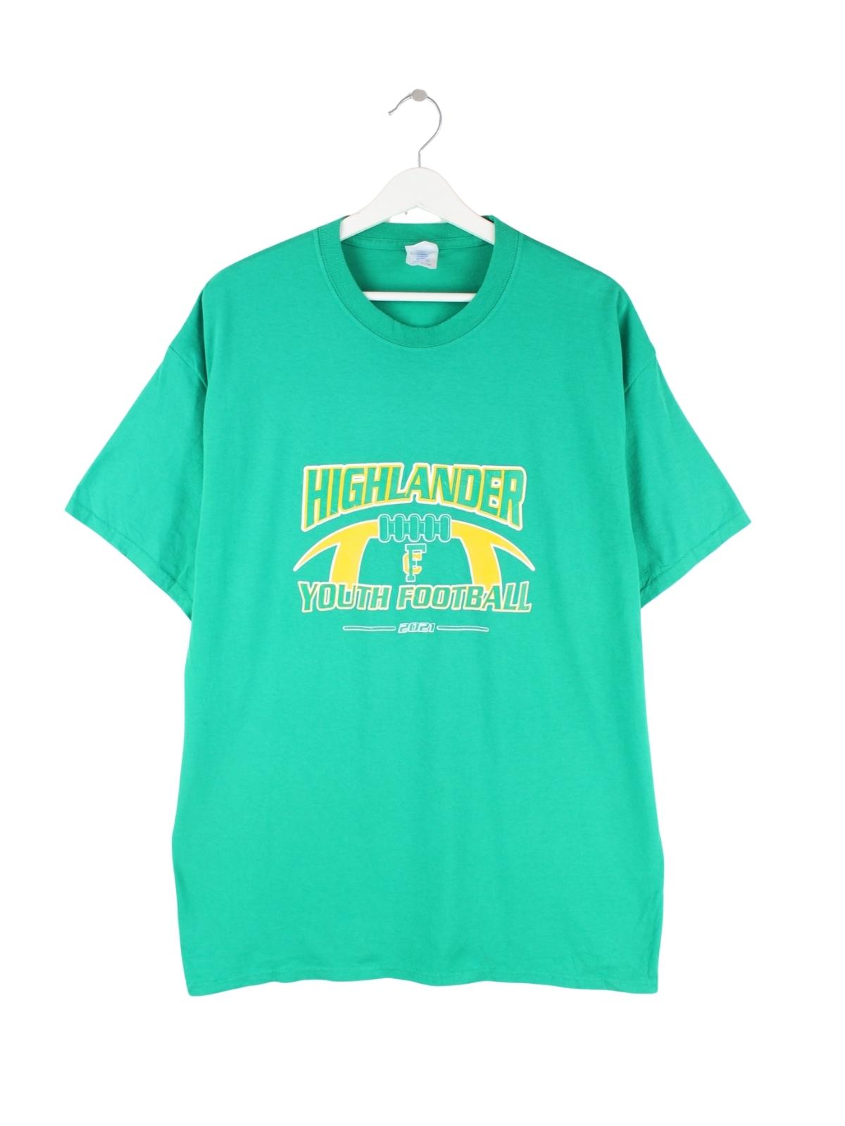 T-Shirt der Brand Port & Company in Größe XL. Es ist aus Baumwolle hergestellt und in Grün auf Lager. Mit schönem Football Print.