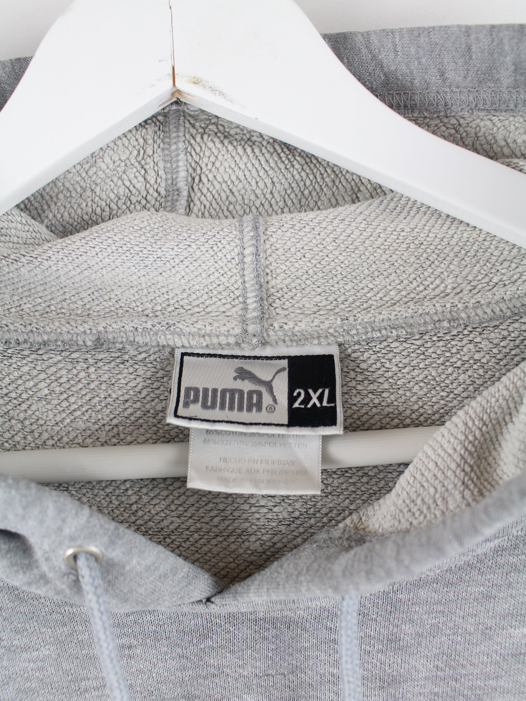 Grauer Hoodie mit Stick des Labels Puma in Größe XXL. Er ist aus einer Baumwollmischung angefertigt und in gutem Zustand in Stock.