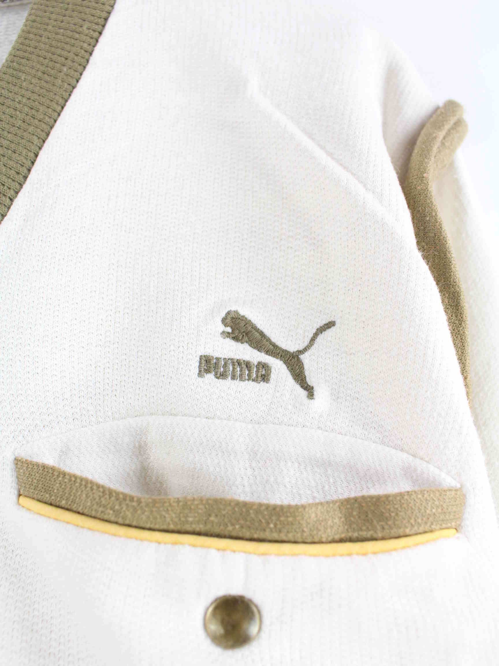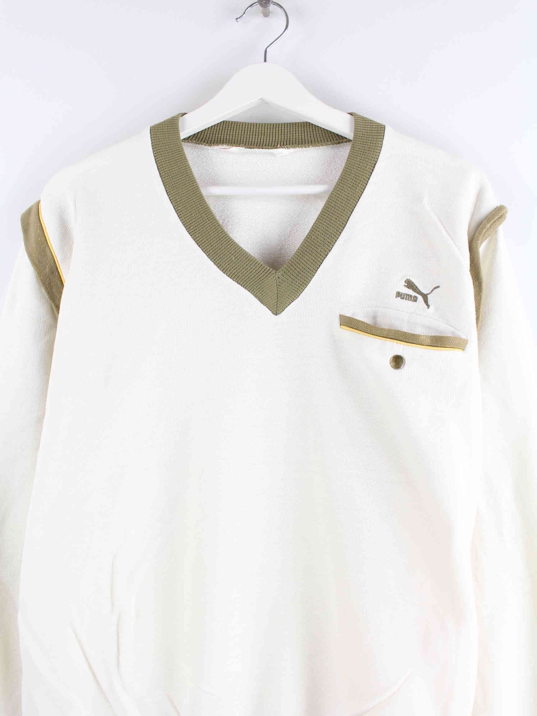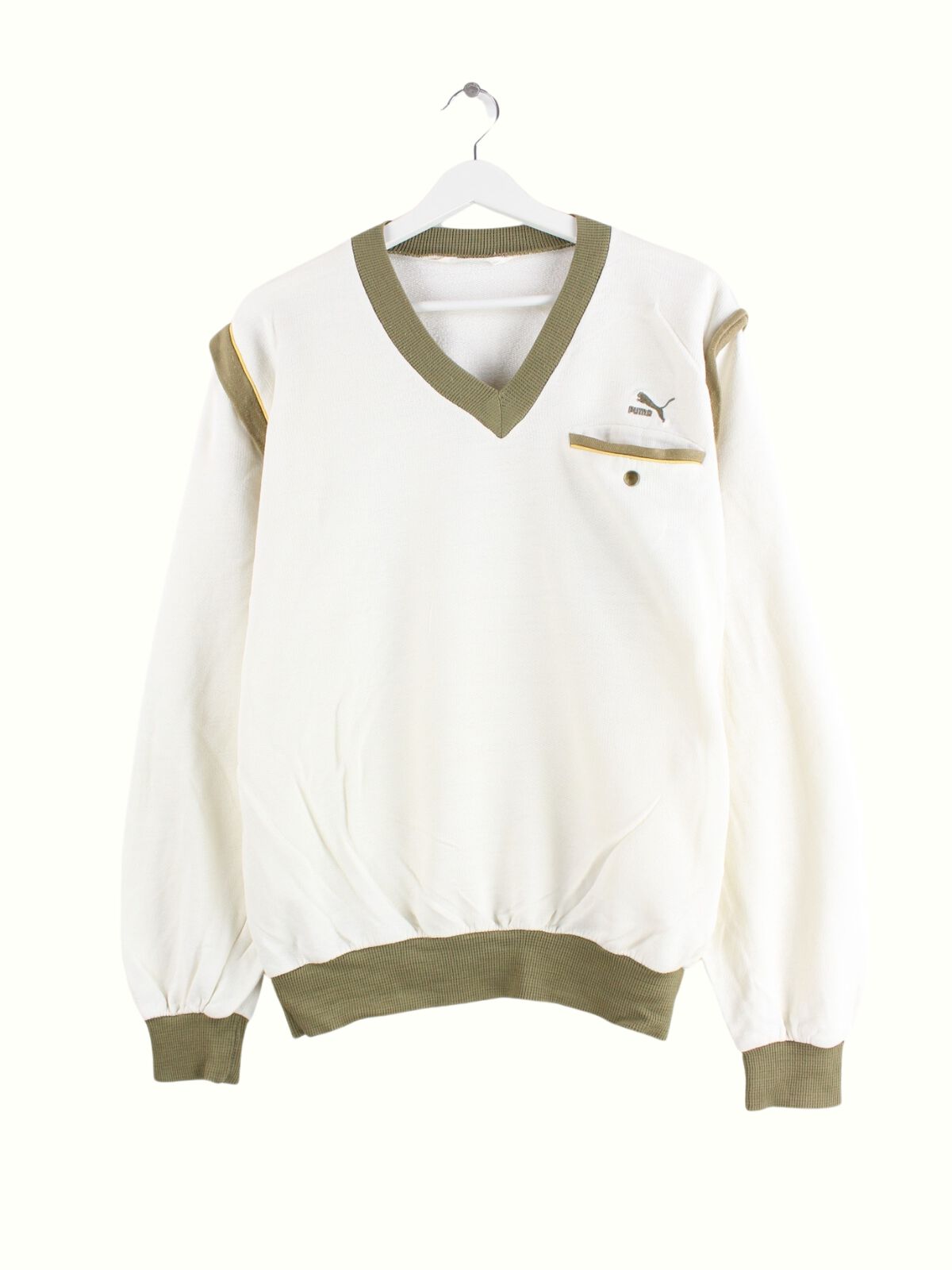 Puma sweater in size M from the 90s. It is made from a cotton blend and is available in white.