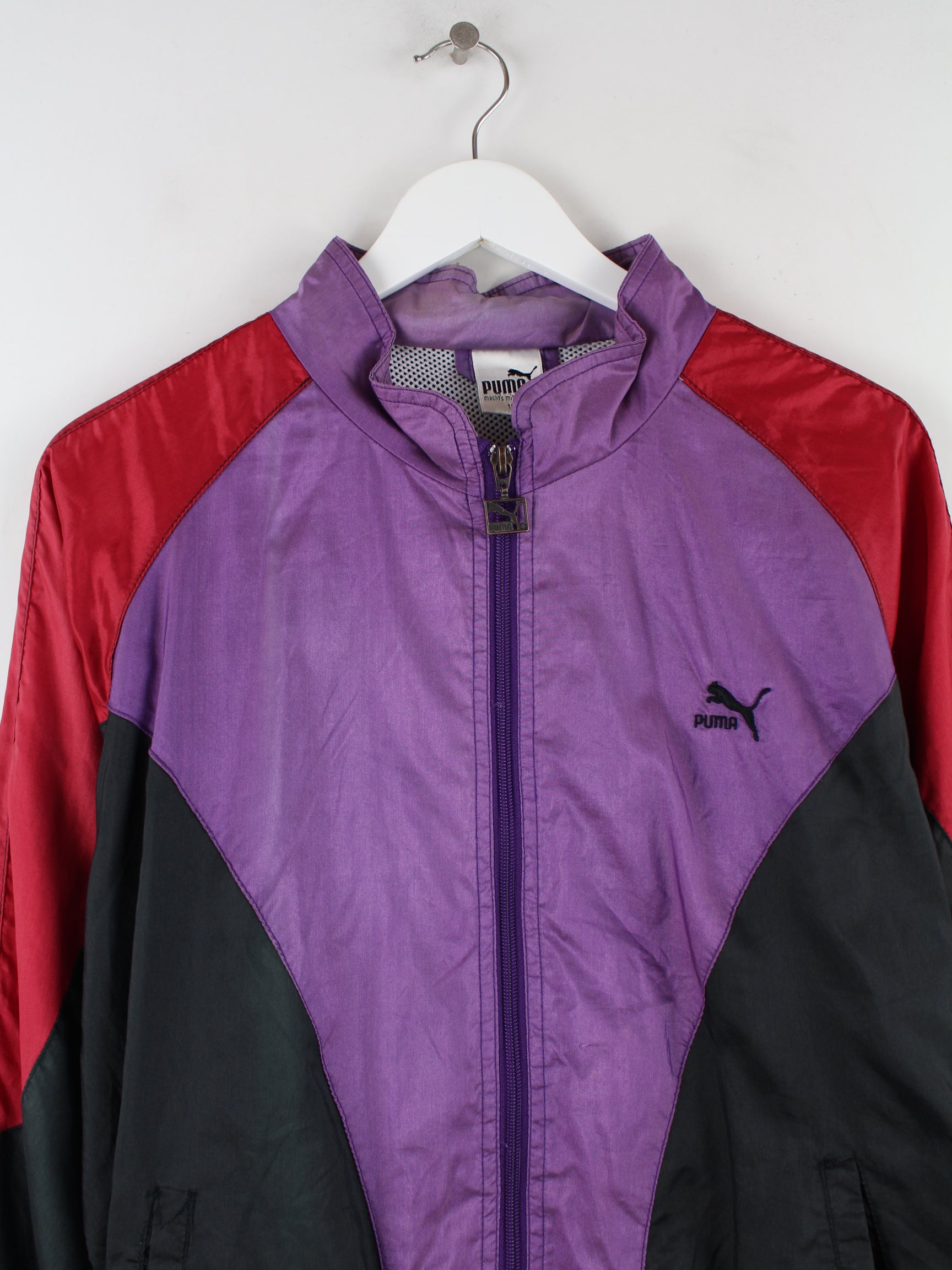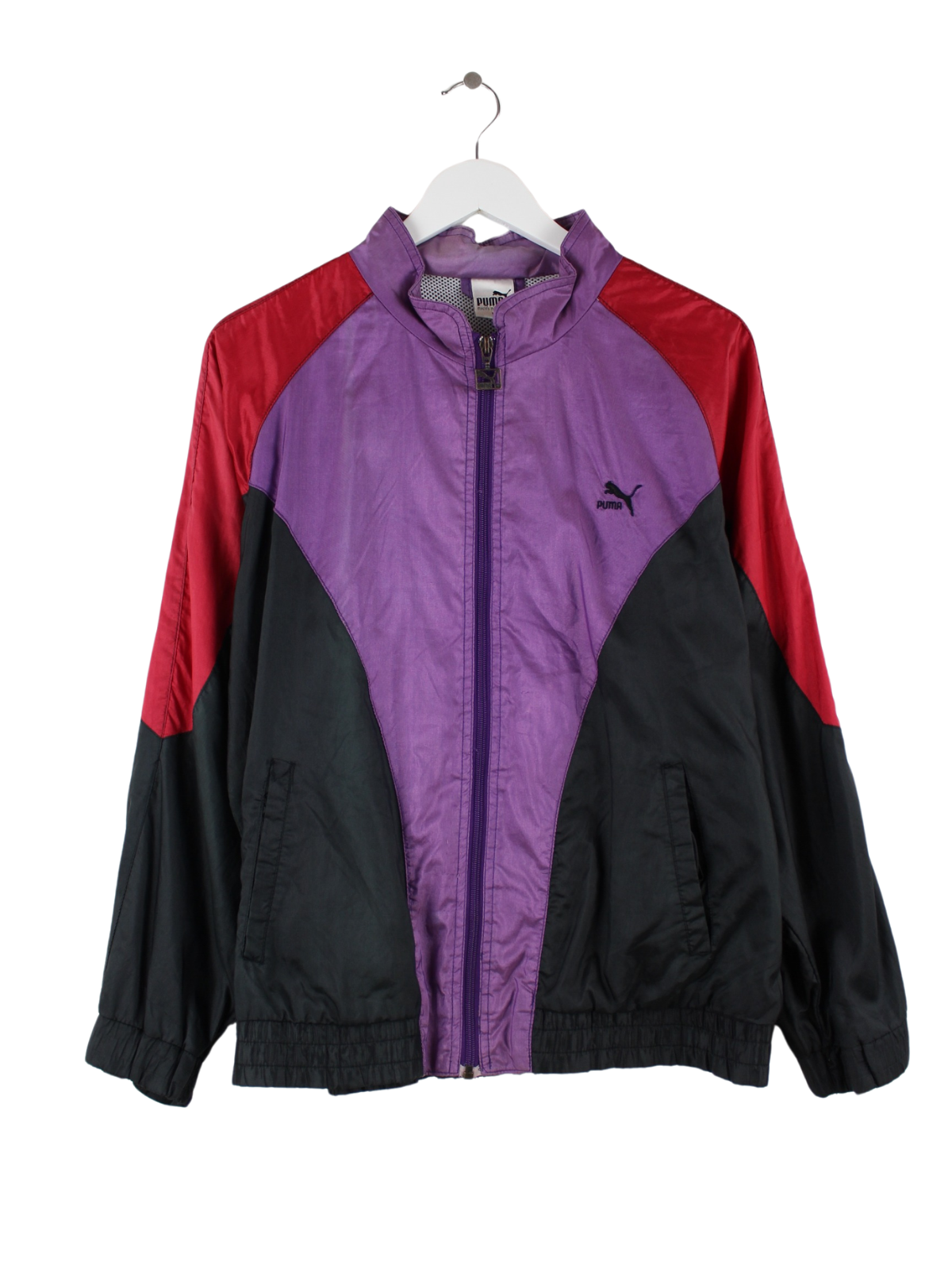 Training jacket from the Puma label in size S from the 80's. It is made of synthetic material and is in stock in purple.