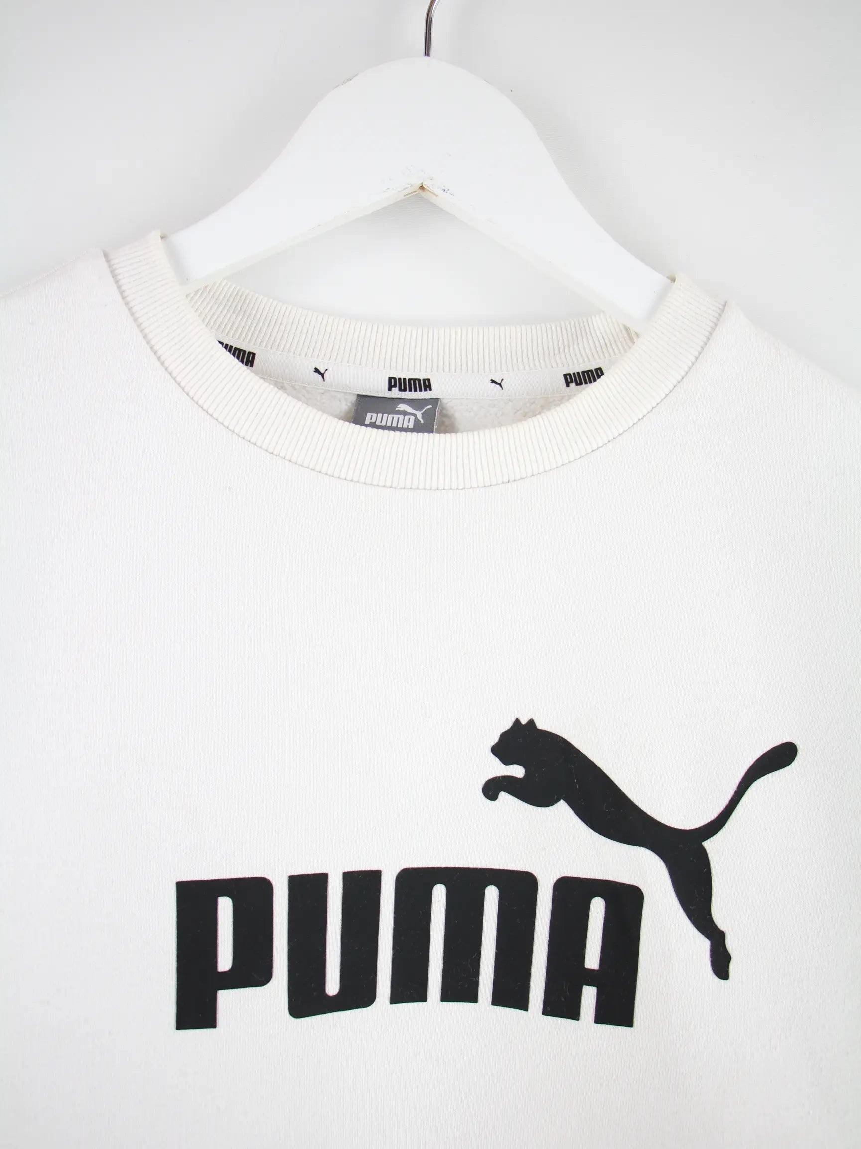 Sweater vom Label Puma in Größe L. Er ist aus einer Baumwollmischung und in Weiß bei uns vorrätig. Mit tollem Logo Print.
