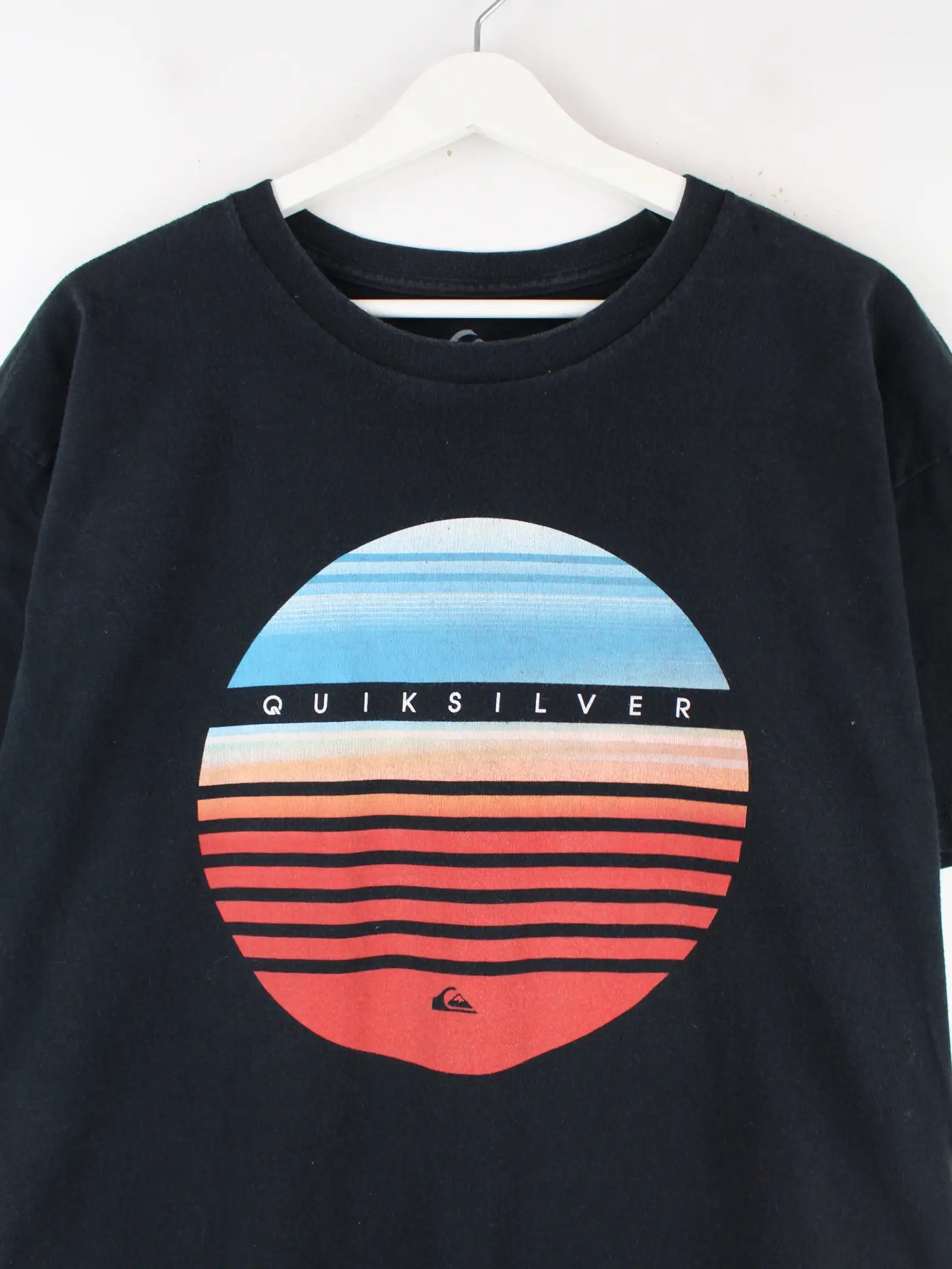 Schwarzes T-Shirt vom Label Quiksilver in Größe XL. Es ist aus Baumwolle angefertigt und in gutem Zustand im Angebot. Mit schönem Print.