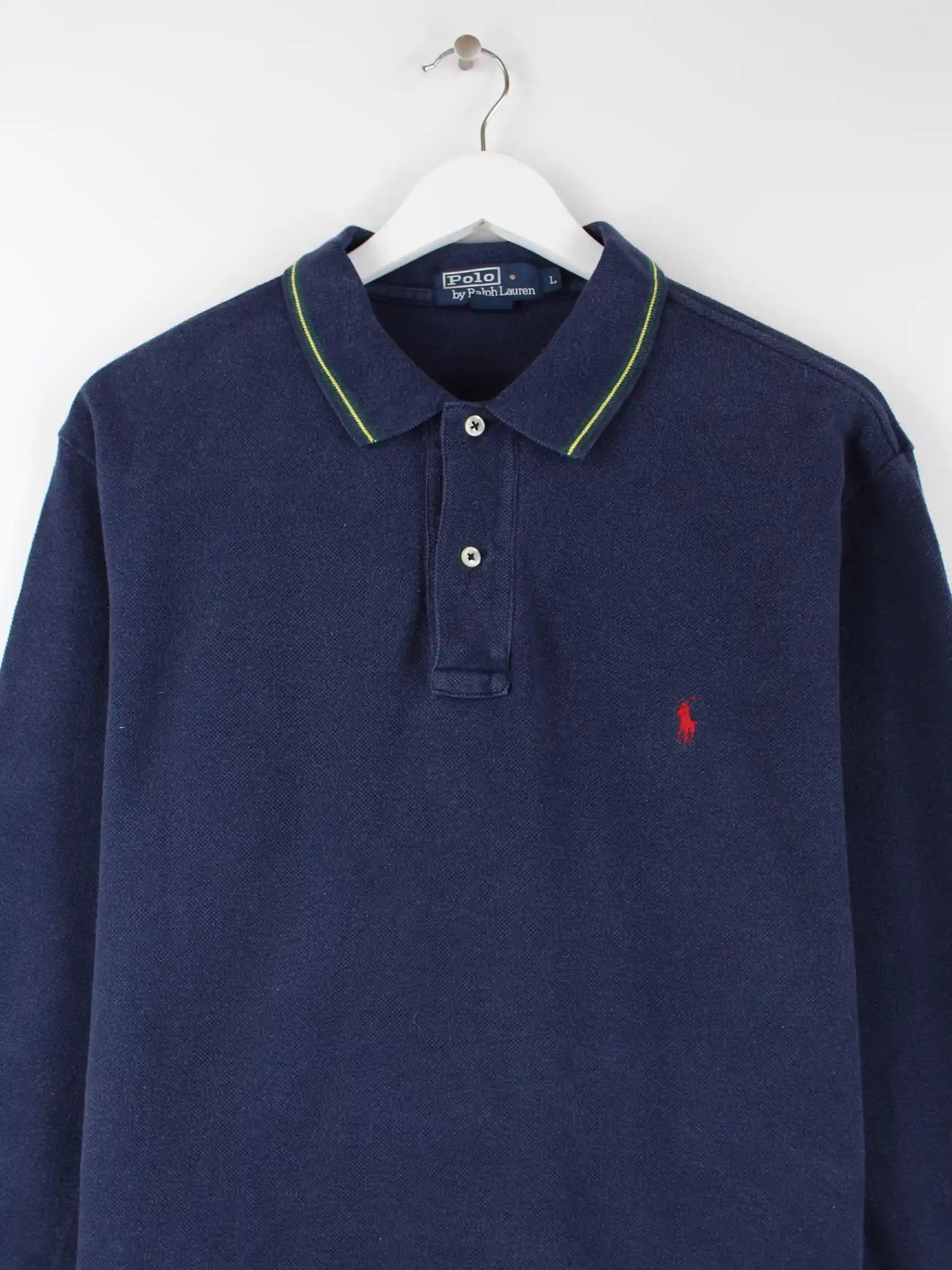 Langarm Poloshirt von Ralph Lauren in Größe L. Es ist aus Baumwolle hergestellt und in Blau zu bekommen.