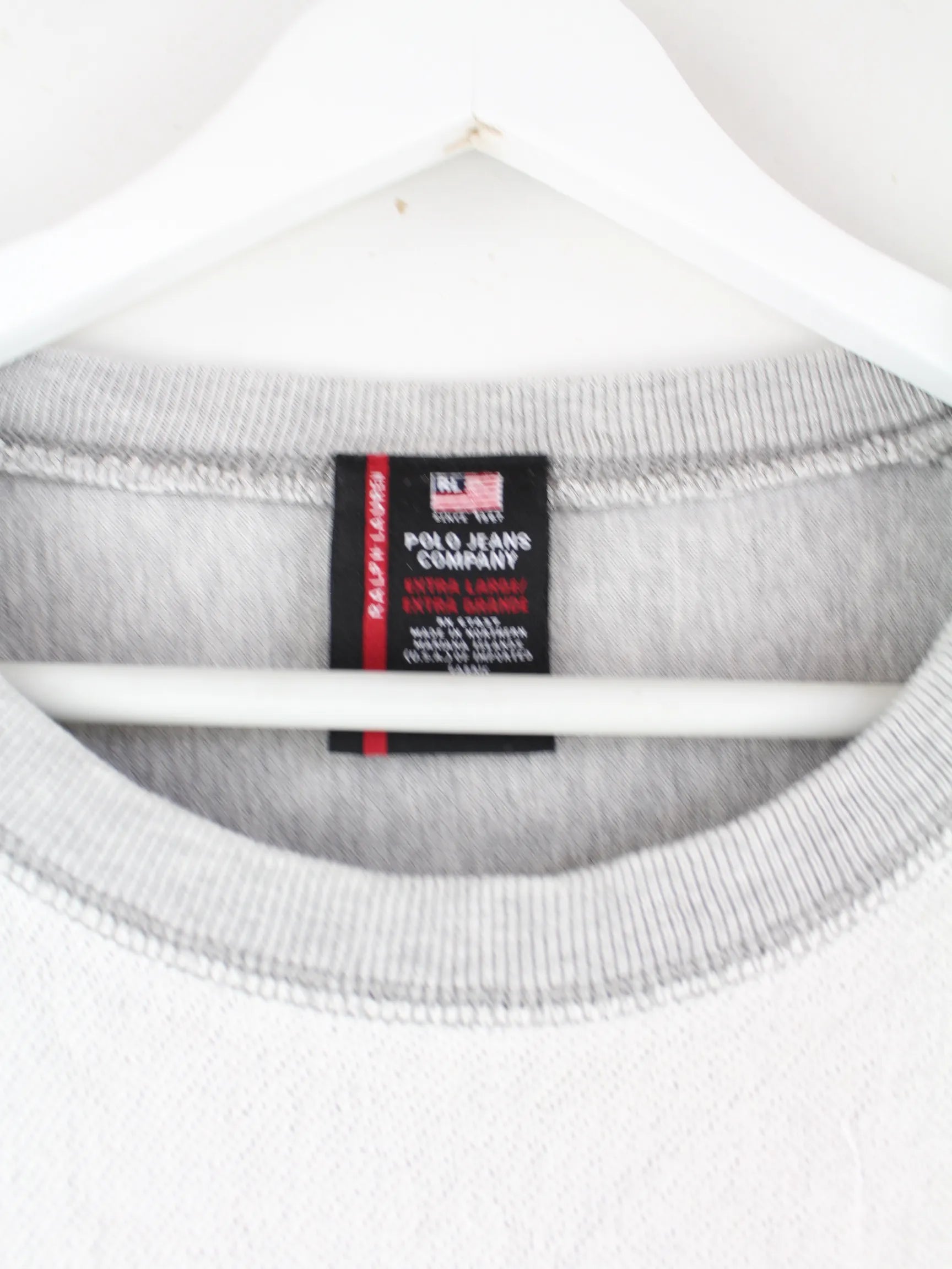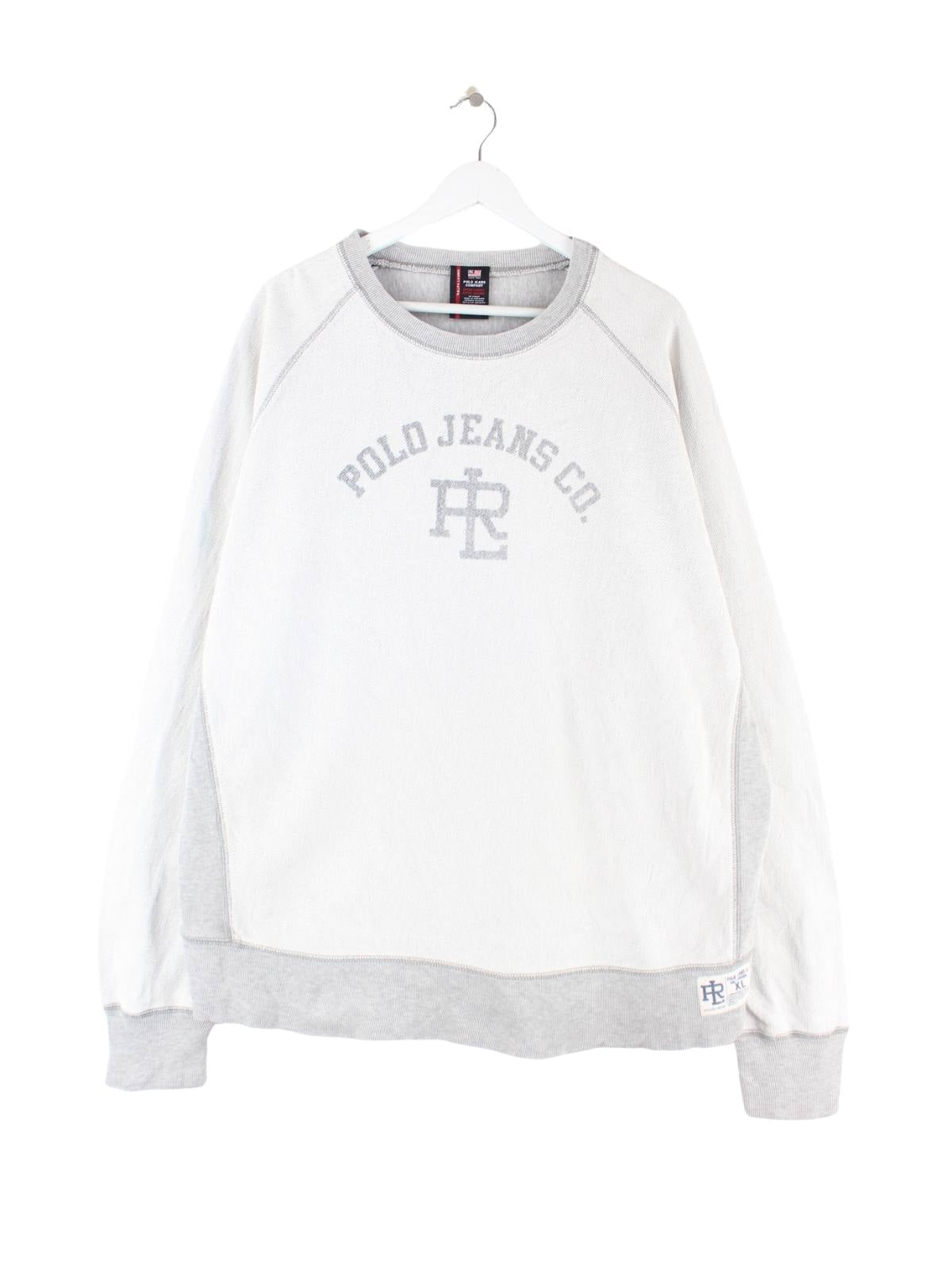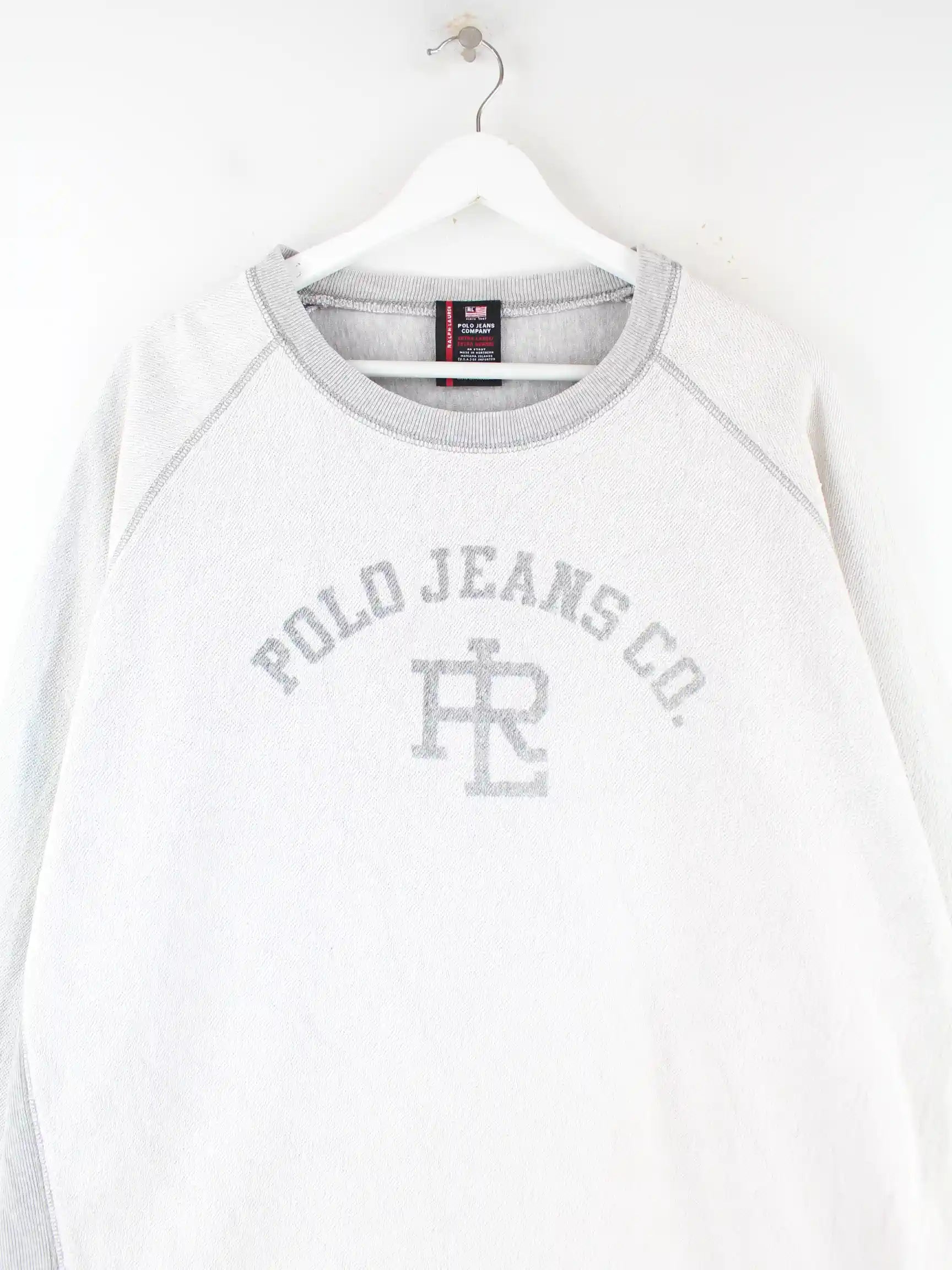 Grauer Sweater der Brand Ralph Lauren in Größe XL. Er ist aus einer Baumwollmischung produziert und in gutem Zustand lieferbar. Mit seltenem 00s Print.