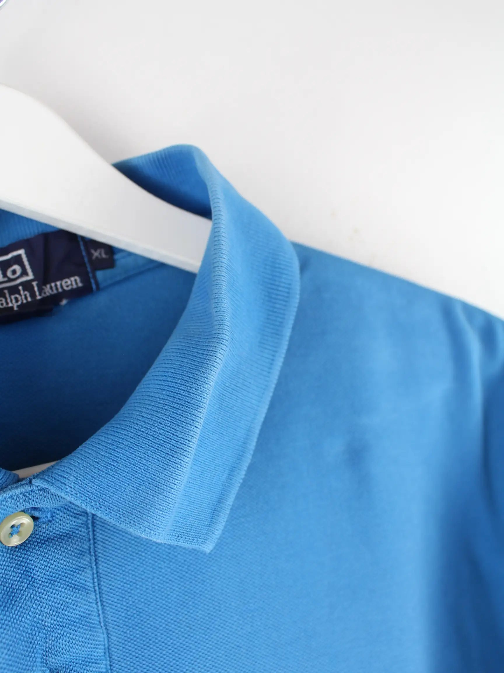 Blaues Poloshirt der Brand Ralph Lauren aus den 90'ern in Größe XL. Es ist aus Baumwolle gemacht. Den Zustand würden wir als 'In Ordnung' bezeichnen (vergl. Bilder).