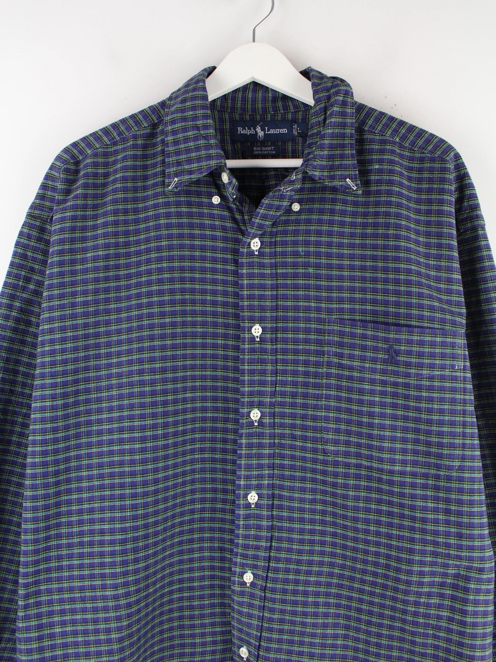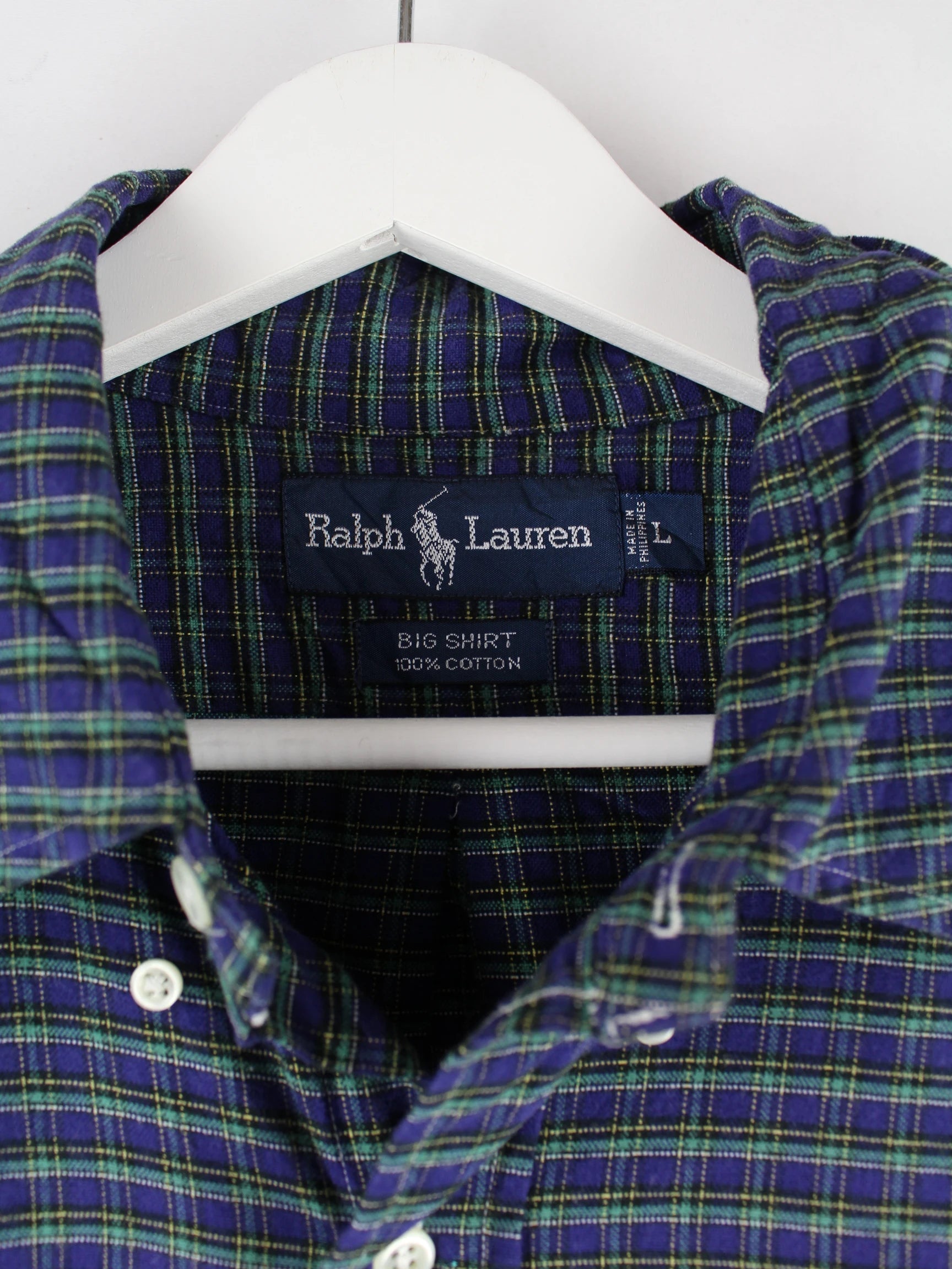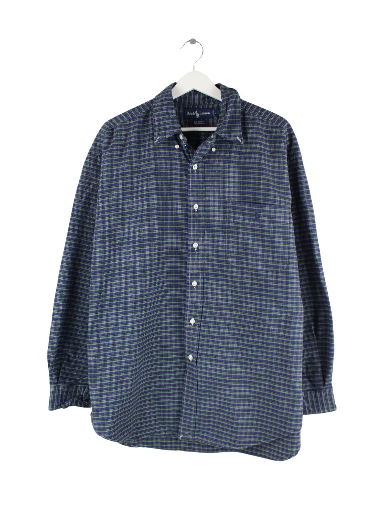 Freizeit Hemd von Ralph Lauren in Größe XL aus den 90'ern. Es ist aus Baumwolle angefertigt und in Blau lieferbar.