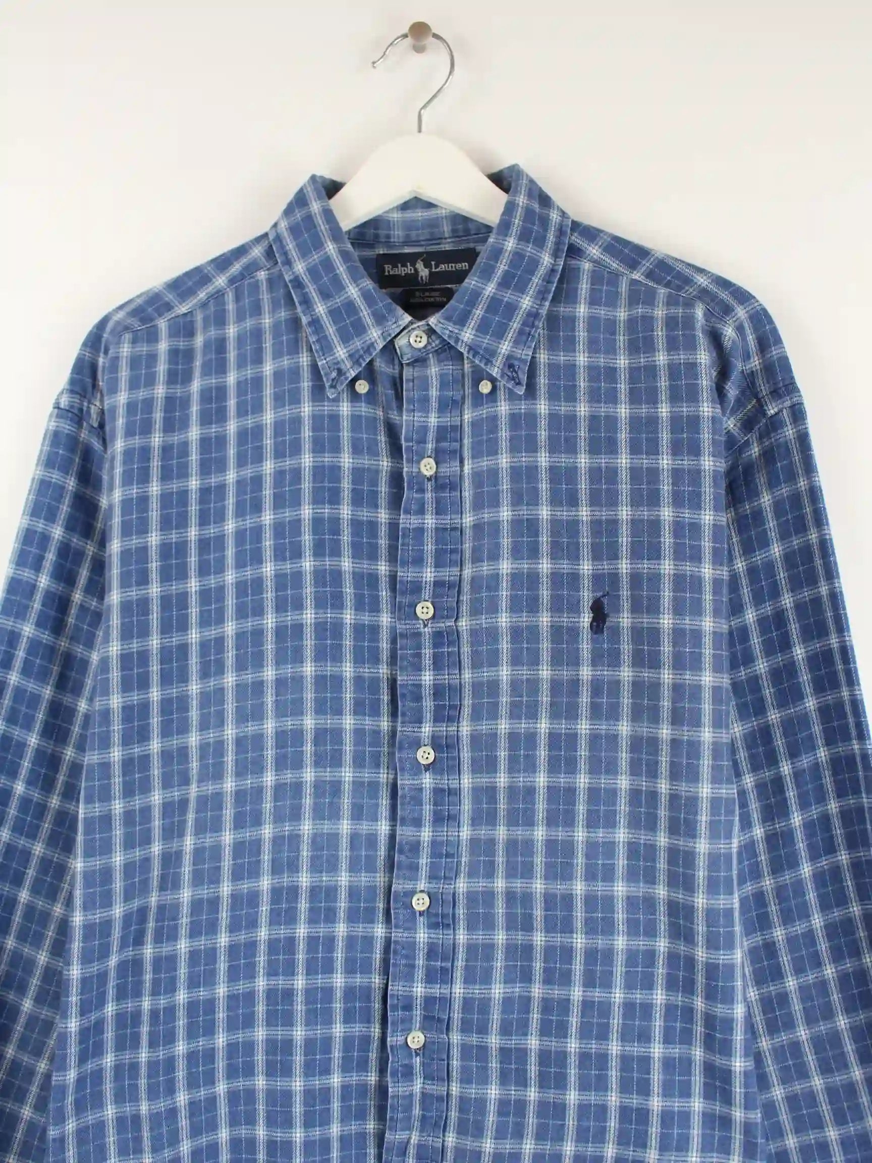 Hemd vom Brand Ralph Lauren in Größe L aus den 90'ern. Es ist aus Baumwolle produziert und in Blau zu bekommen.