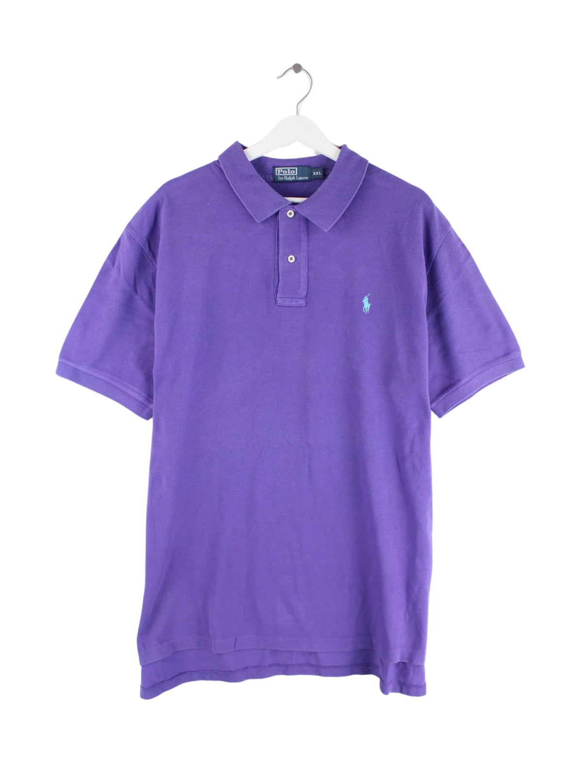 Poloshirt der Marke Ralph Lauren in Größe XXL aus den 90'ern. Es ist aus Baumwolle hergestellt und in Lila lieferbar.