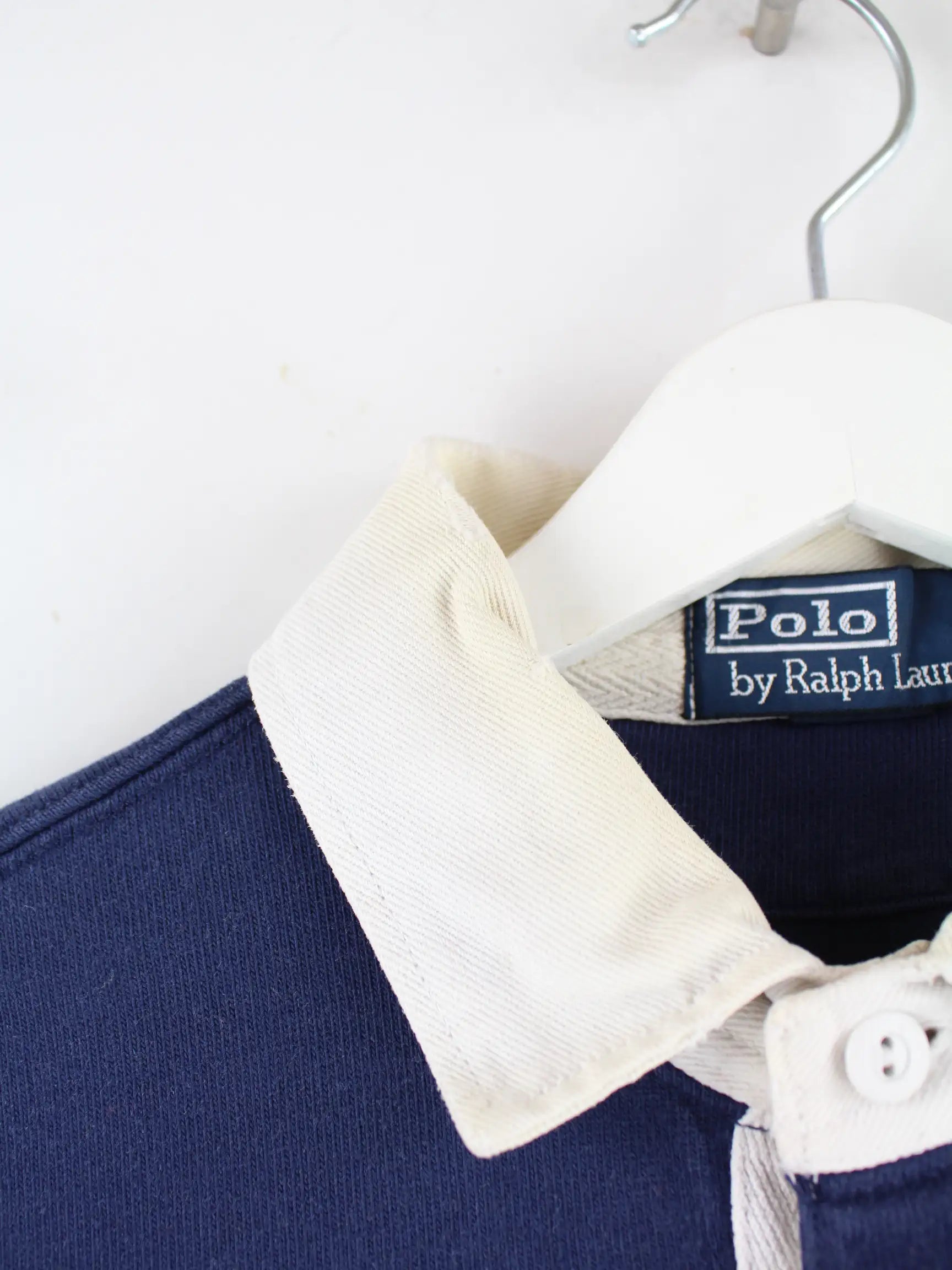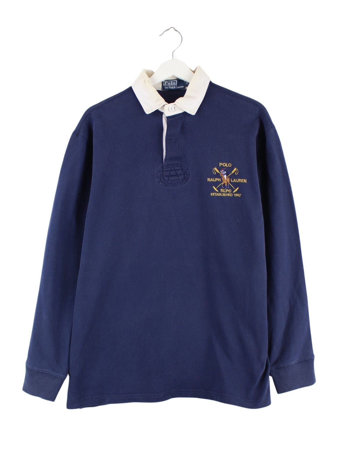 Ralph Lauren 90s Vintage Rugby Langarm Polo Blau M