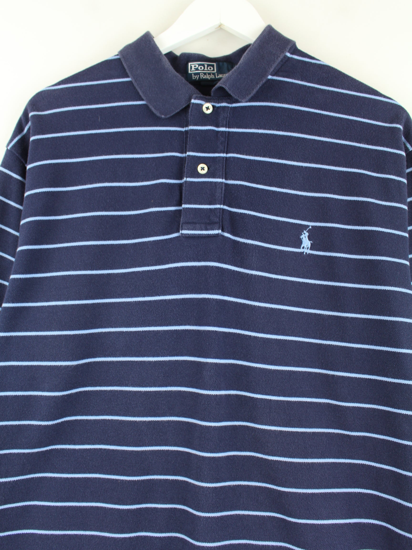 Ralph Lauren 90s Vintage Striped Polo Blue XXL