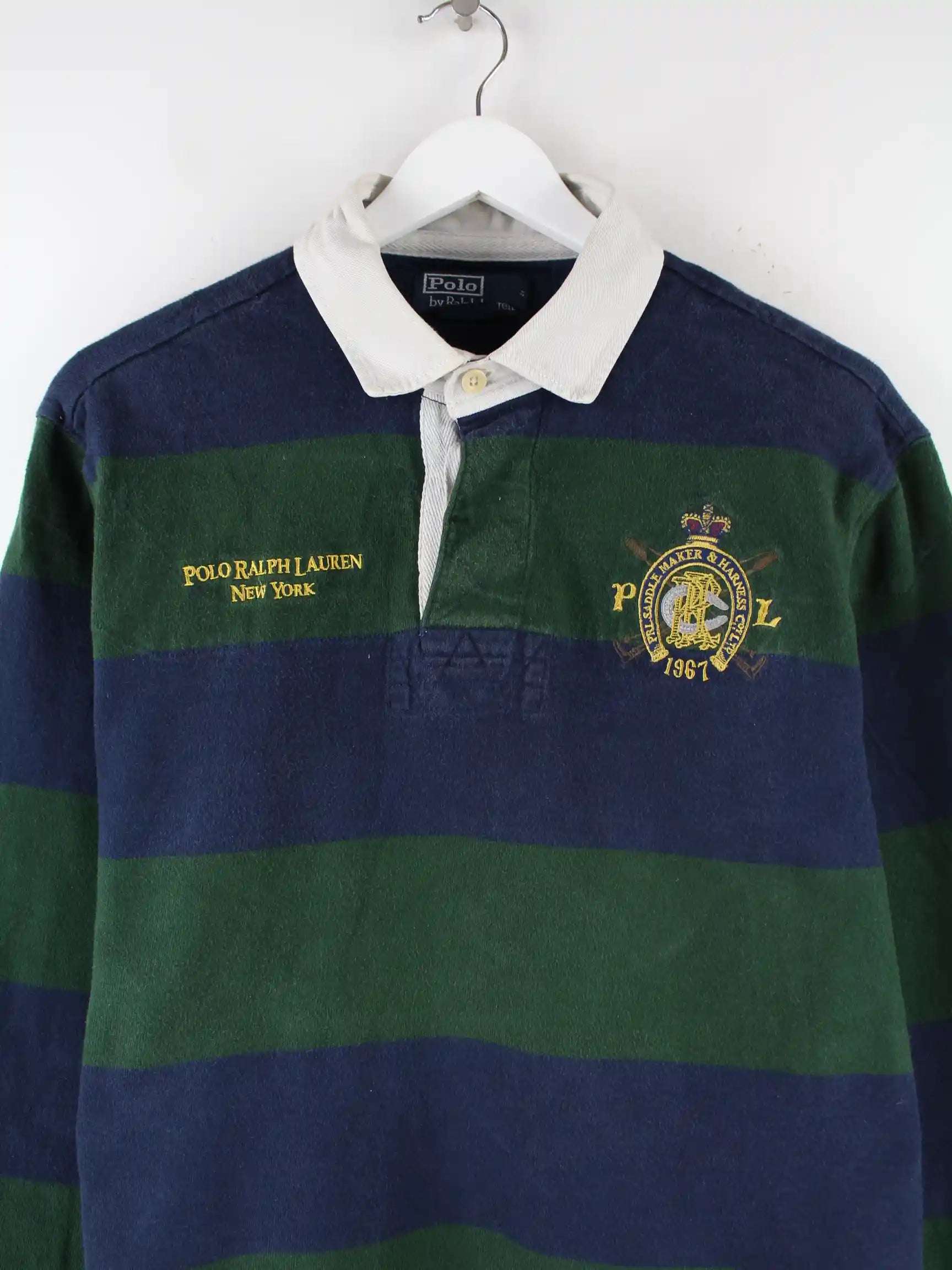 Ralph Lauren 90s Vintage Striped Rugby Polo Langarm Polo Blau/Grün L