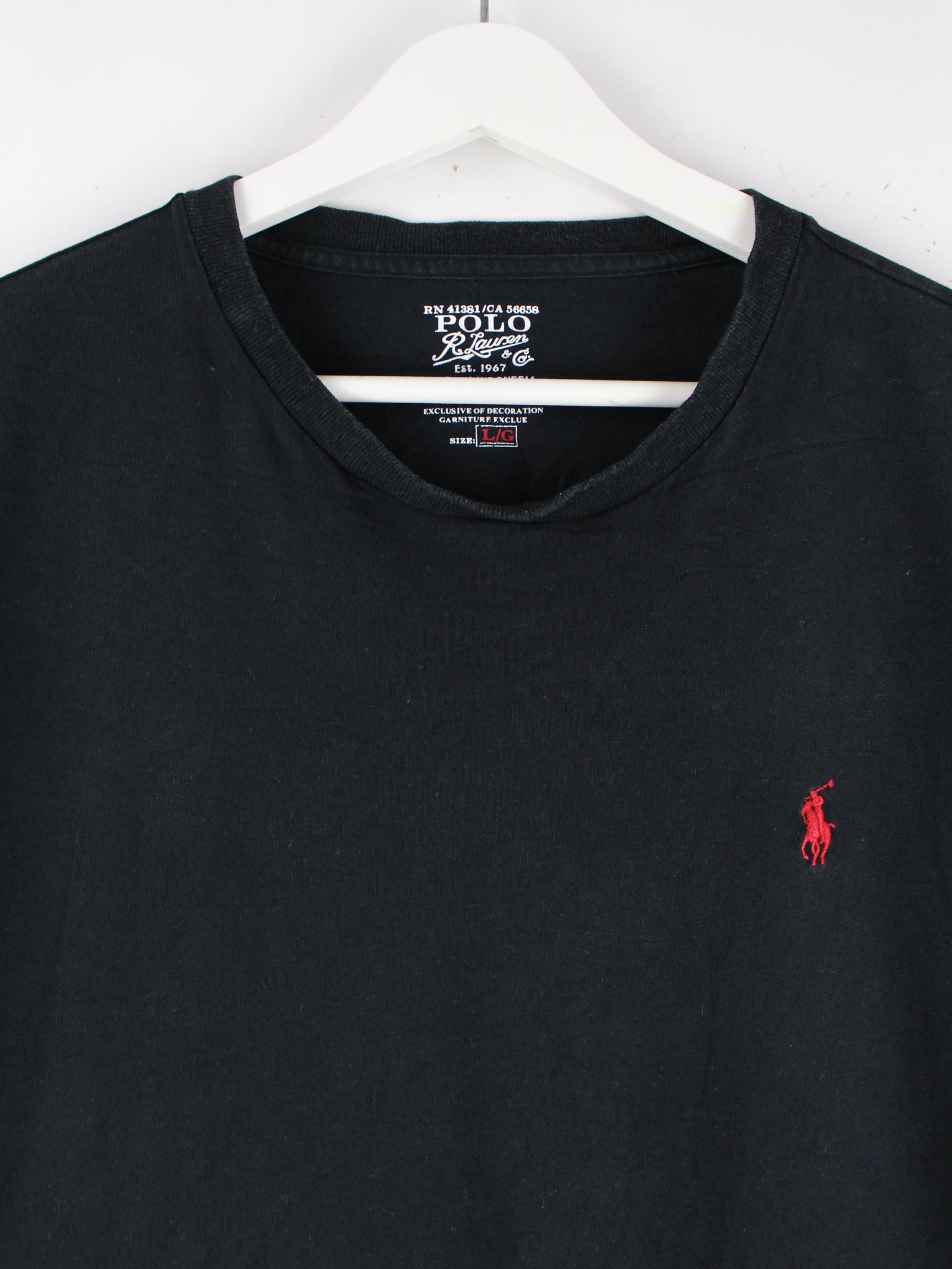 Schwarzes T-Shirt der Marke Ralph Lauren in Größe L. Es ist aus einer Baumwollmischung und in gutem Zustand zu haben.