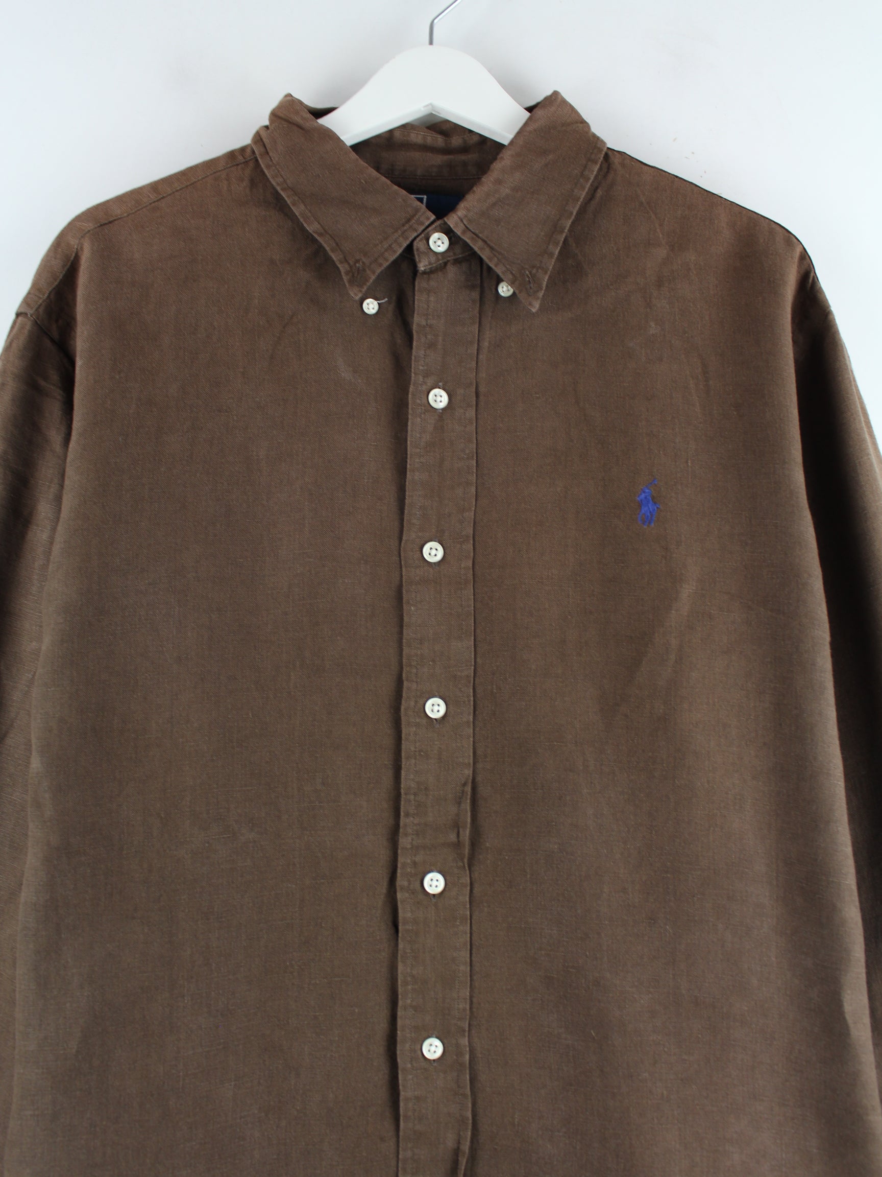 Freizeit Hemd der Brand Ralph Lauren in Größe XL. Es ist aus Leinen angefertigt und in Braun vorrätig.