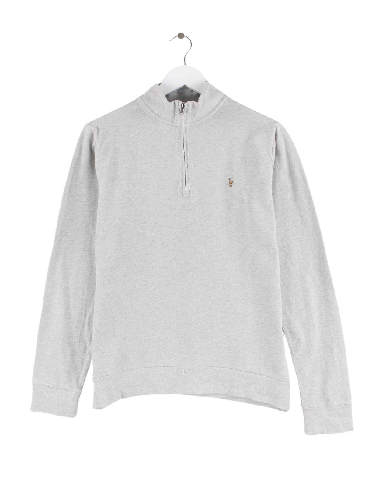 Grauer Sweater mit halbem Reißverschluß des Labels Ralph Lauren in Größe XS. Er ist aus einer Baumwollmischung angefertigt und in sehr gutem Zustand bei uns zu bekommen.