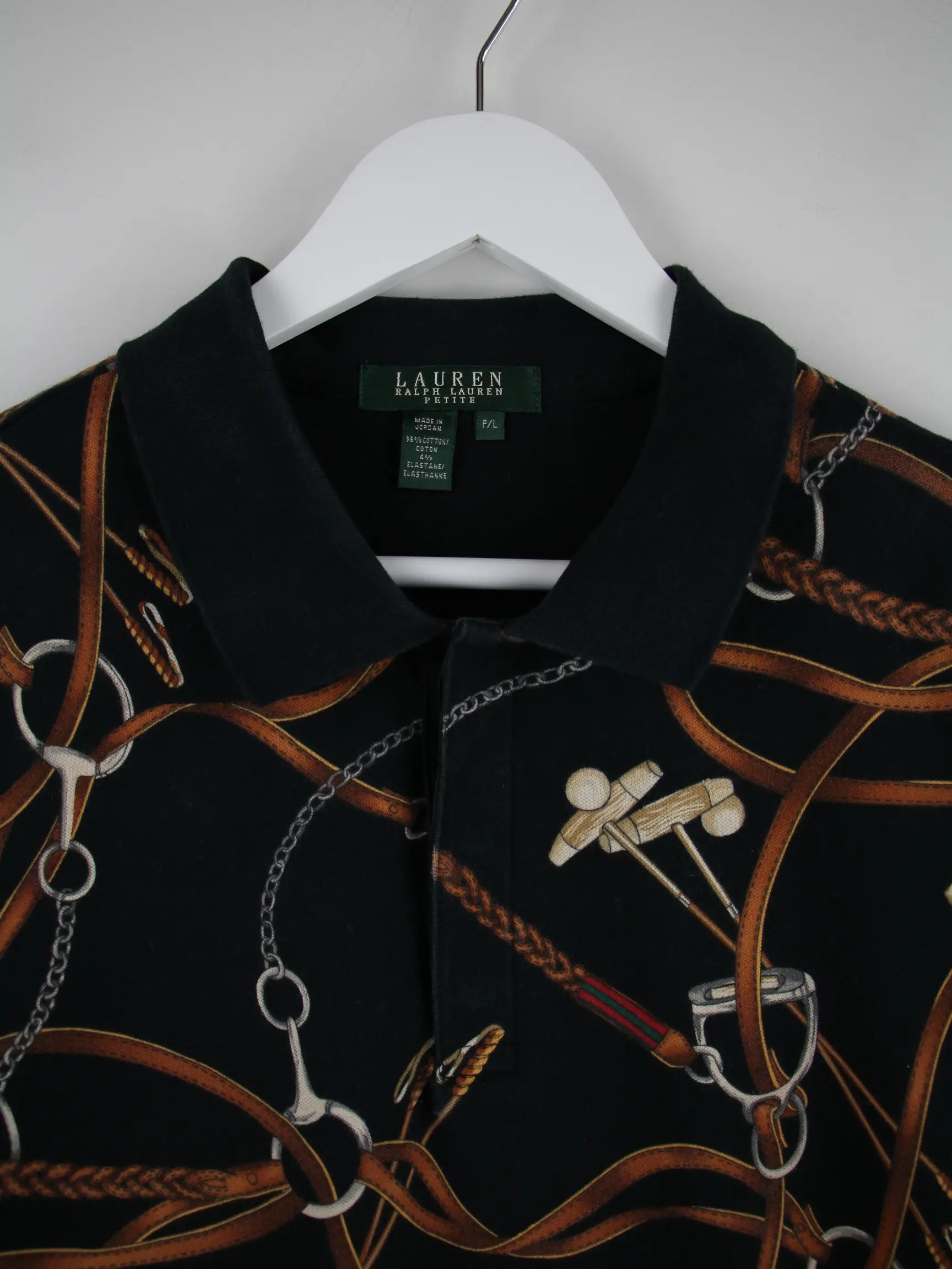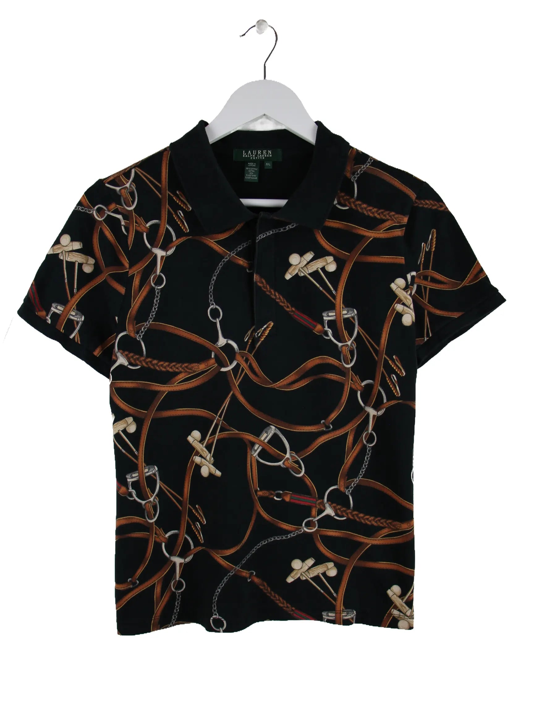 Ralph Lauren Damen Petite 00s Pattern Polo Schwarz XS