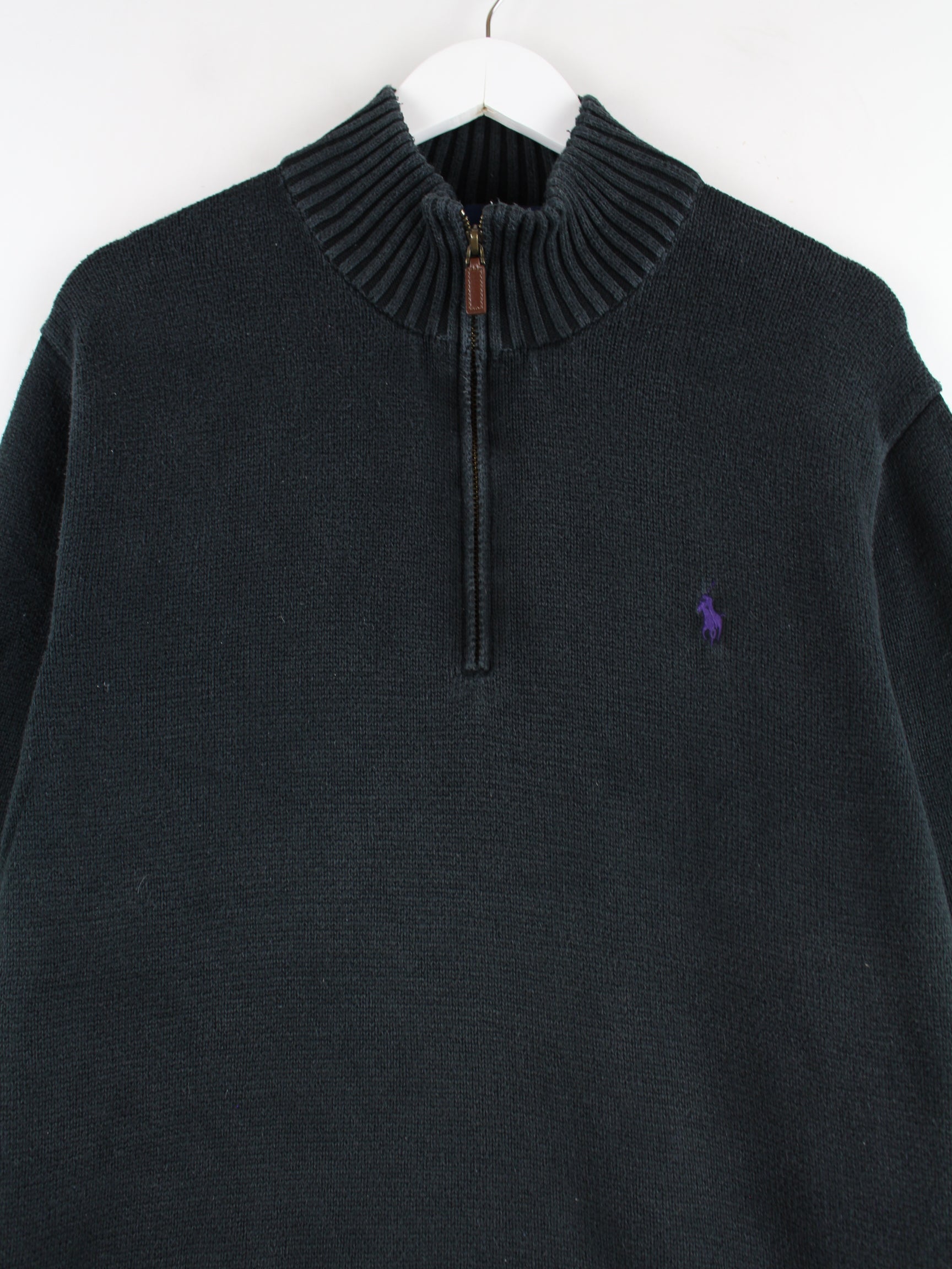 Black half-zip sweater from Ralph Lauren in size XL. It is made of cotton and is in good condition.