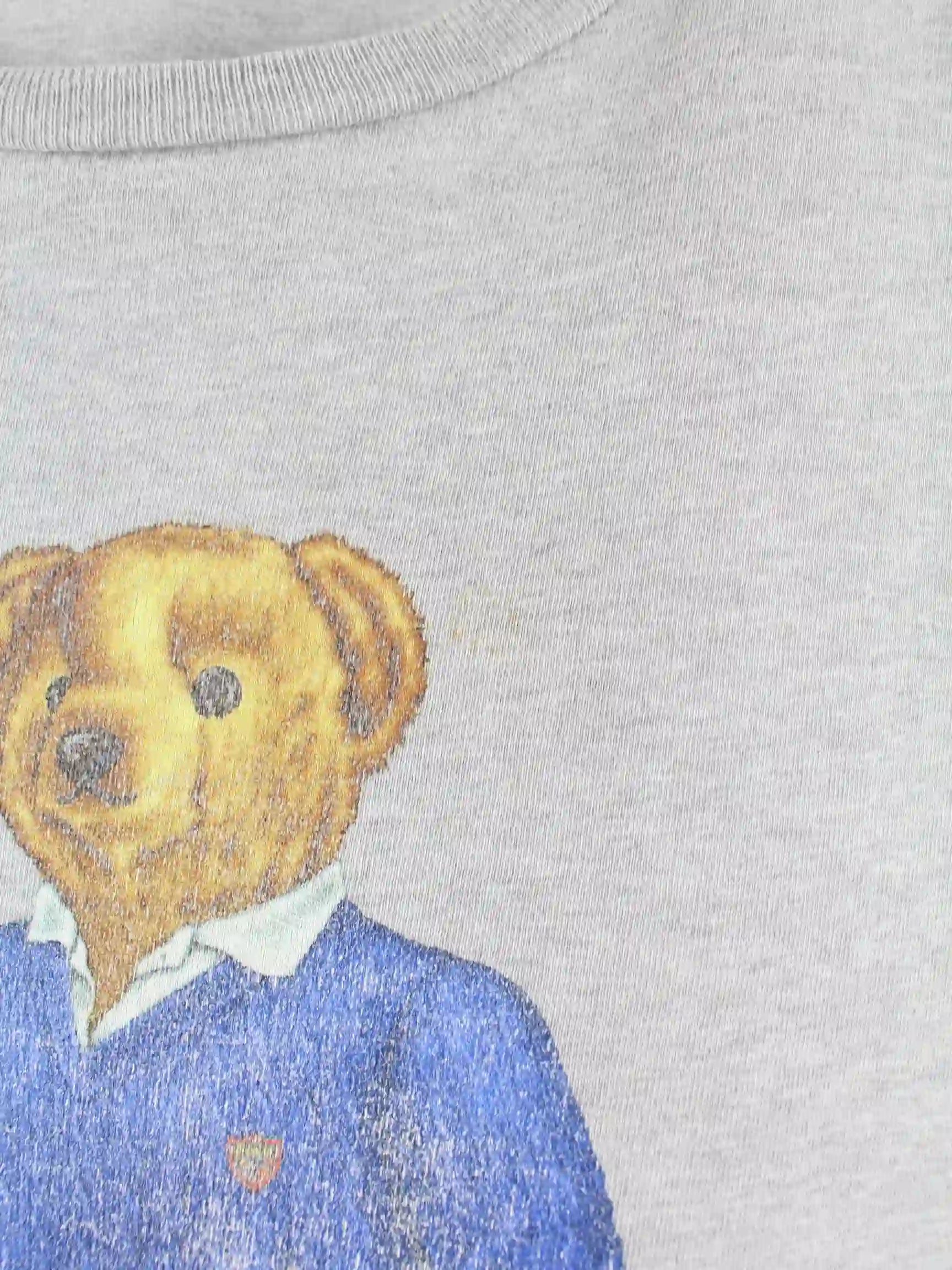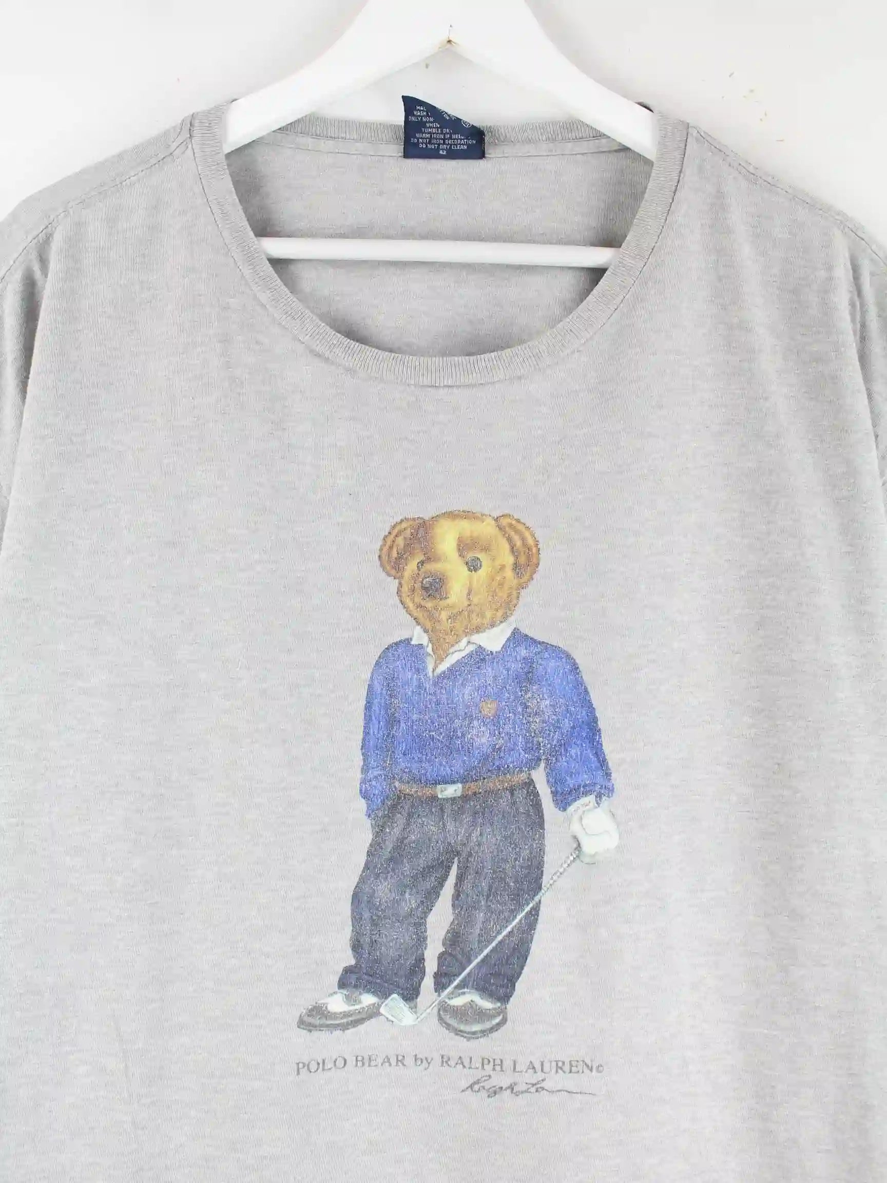 T-Shirt aus dem Hause Ralph Lauren in Größe XXL. Es ist aus Baumwolle gefertigt und in Grau in Stock. Mit tollem Bear Print.