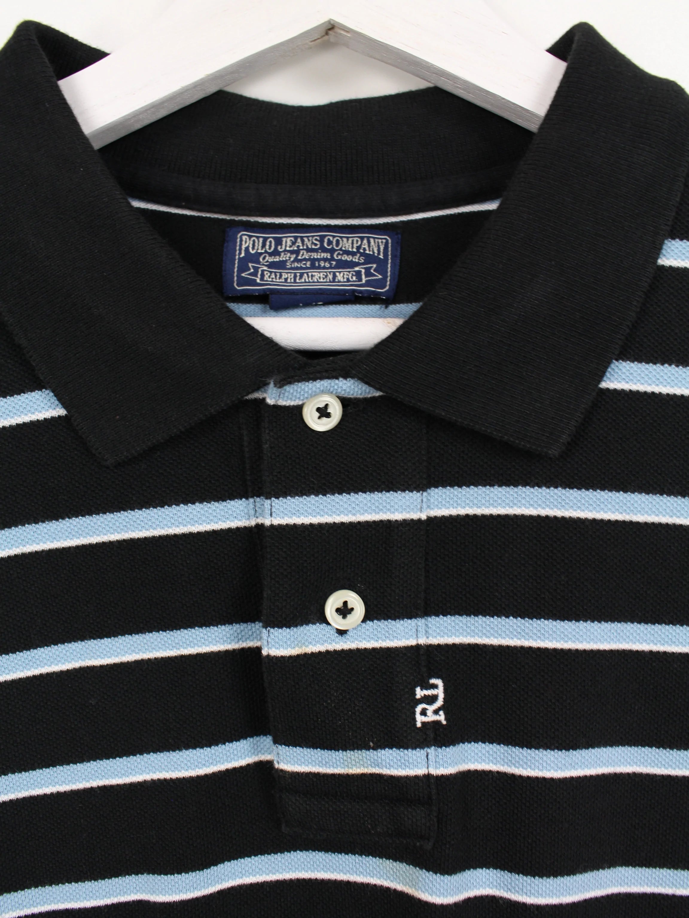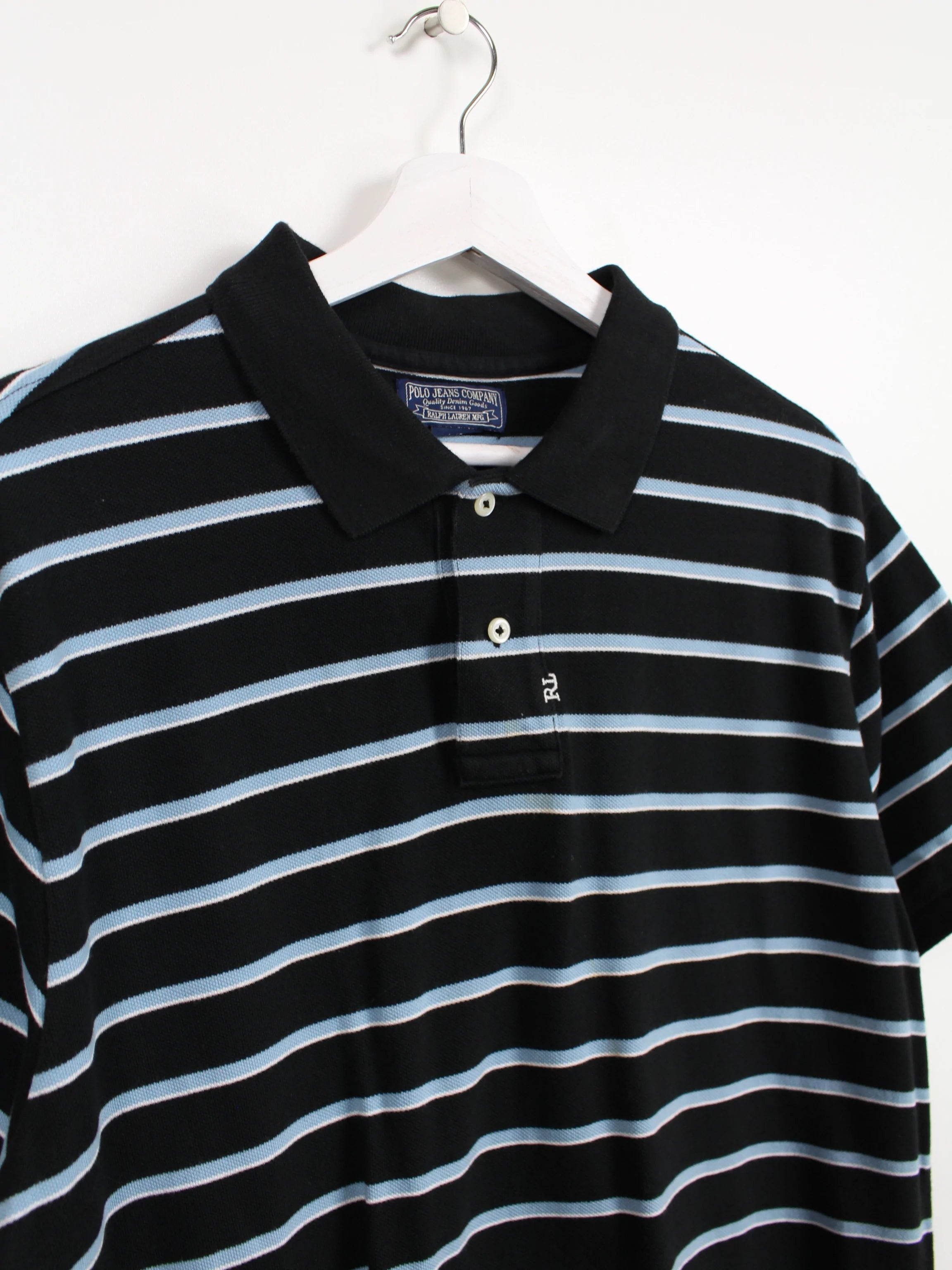 Black and blue striped polo from Ralph Lauren.