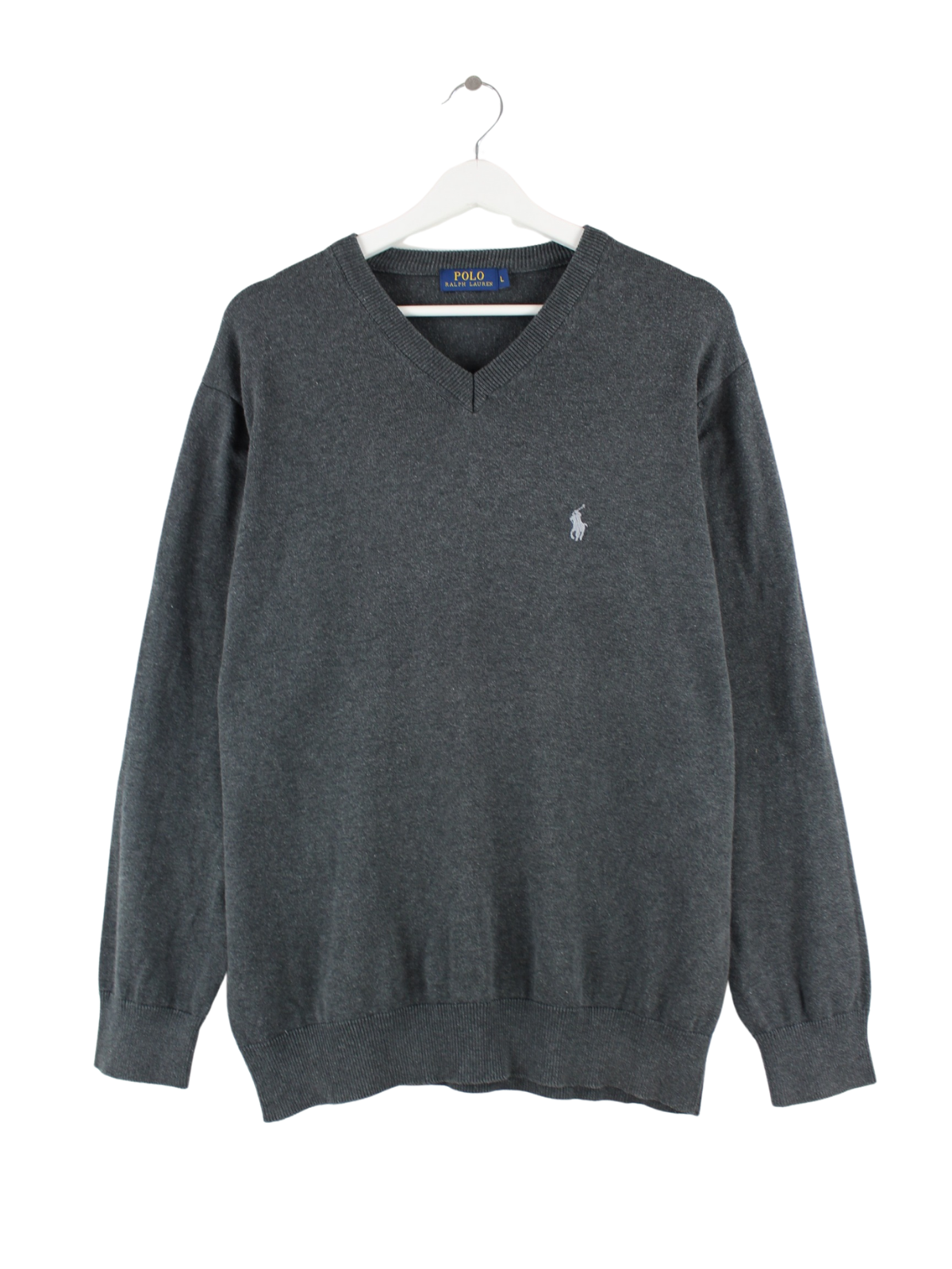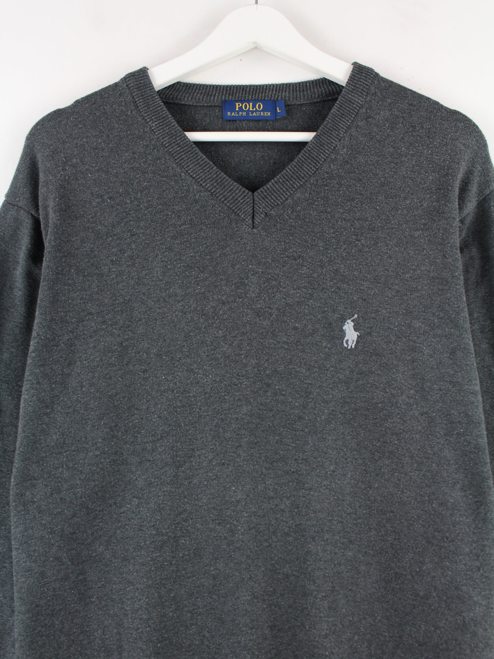 Sweater from the label Ralph Lauren in size L. It is made of cotton and comes in grey.
