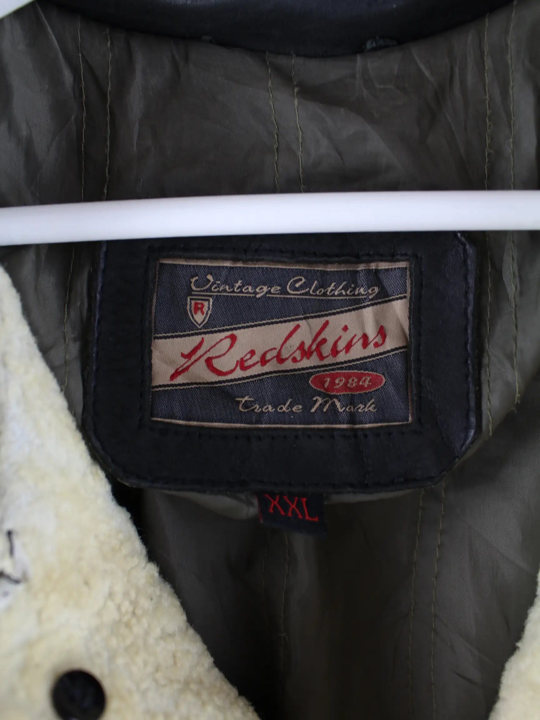 Braune Jacke vom Brand Redskins aus den 90'ern in Größe XXL. Sie ist aus Leder gefertigt. Den Zustand würden wir als 'In Ordnung' bezeichnen (vergl. Bilder).