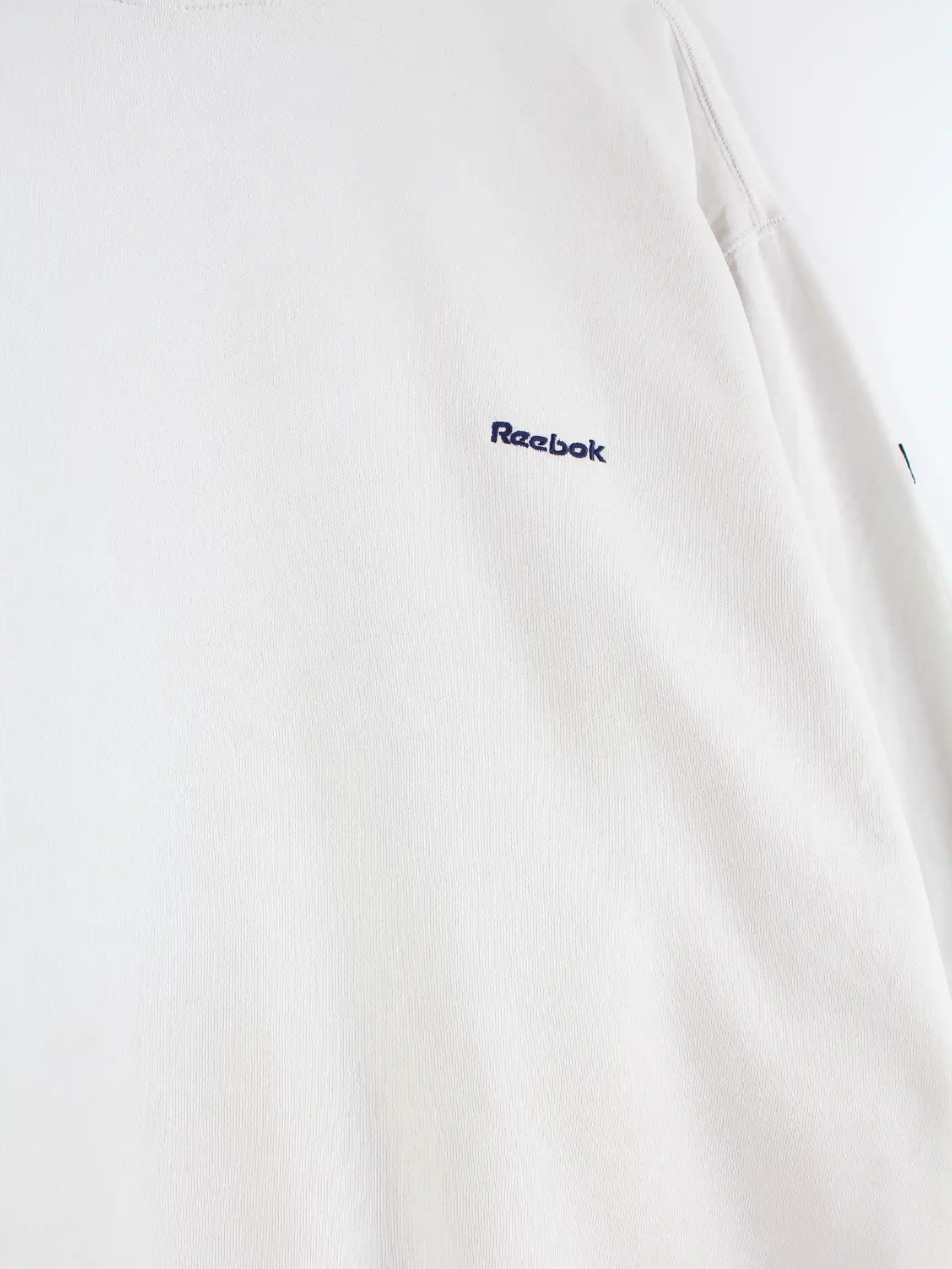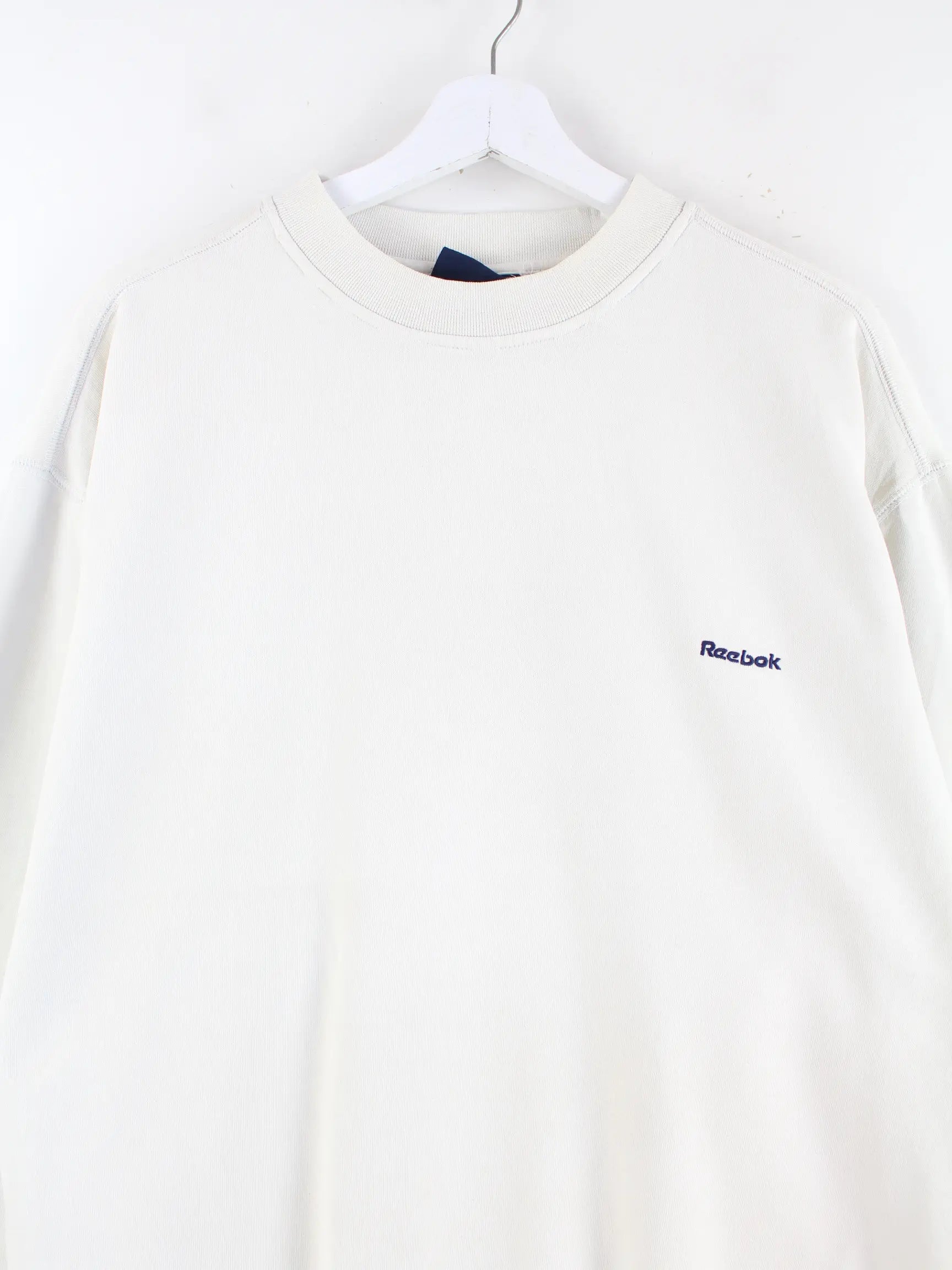 Weißer Sweater des Labels Reebok in Größe L. Er ist aus einer Baumwollmischung . Den Zustand würden wir als 'In Ordnung' bezeichnen (vergl. Bilder).