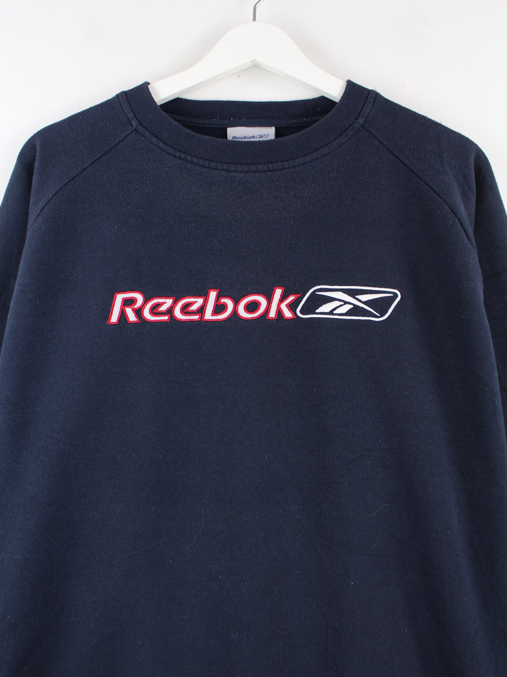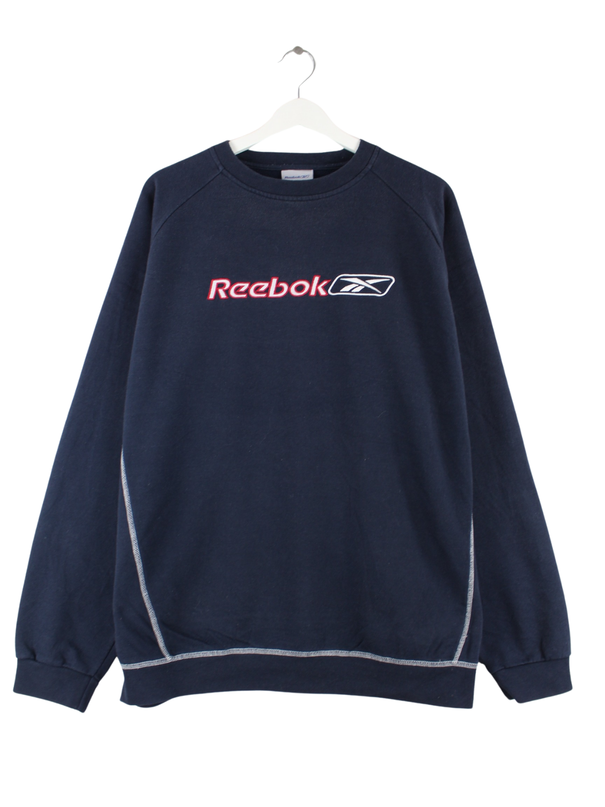 Sweater from Reebok with embroidered logo in size XXL. It is made from a cotton blend and is available in blue.