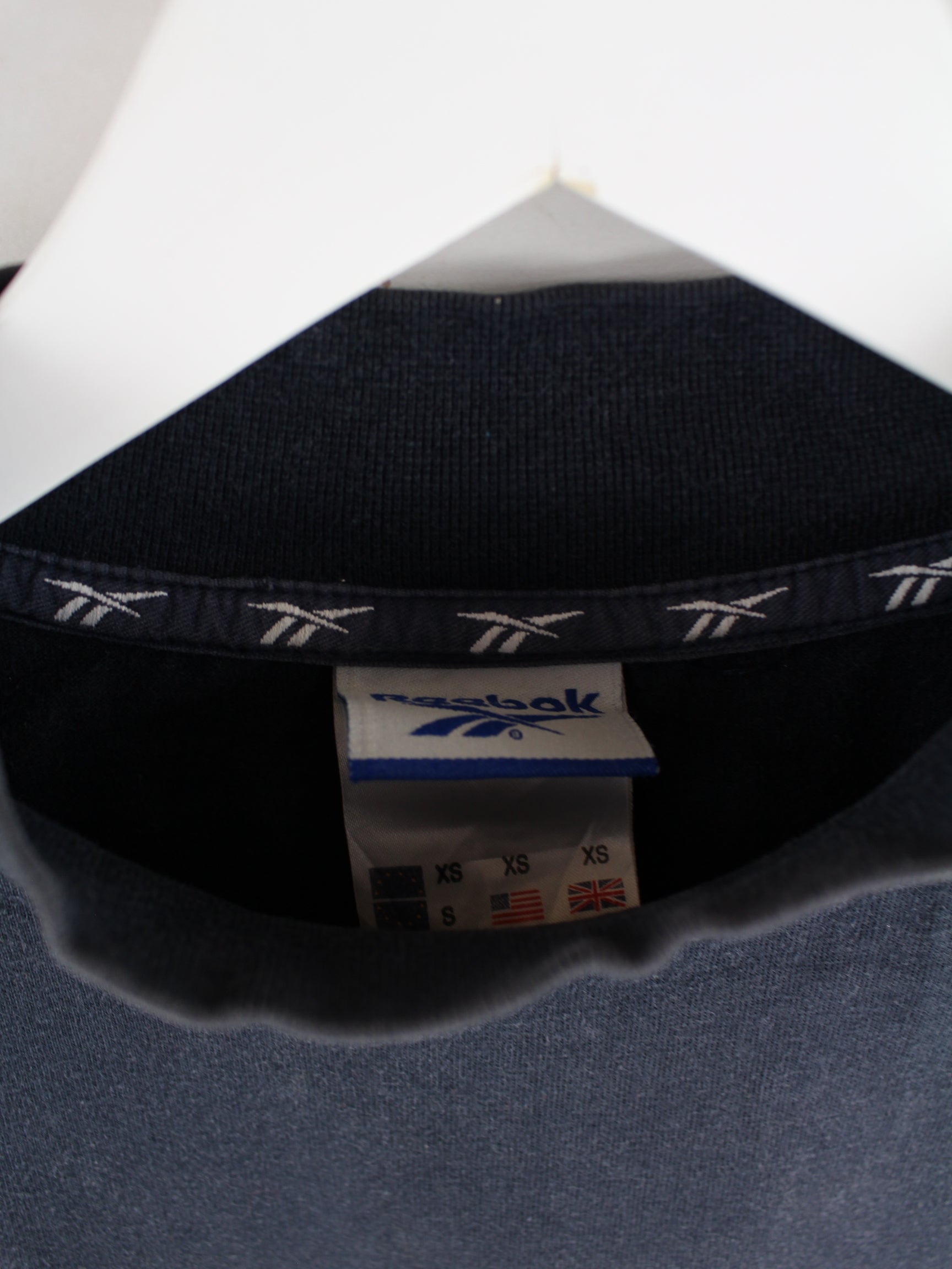 Black sweatshirt with embroidered motif from Reebok in size S. It is made of cotton and is in good condition.