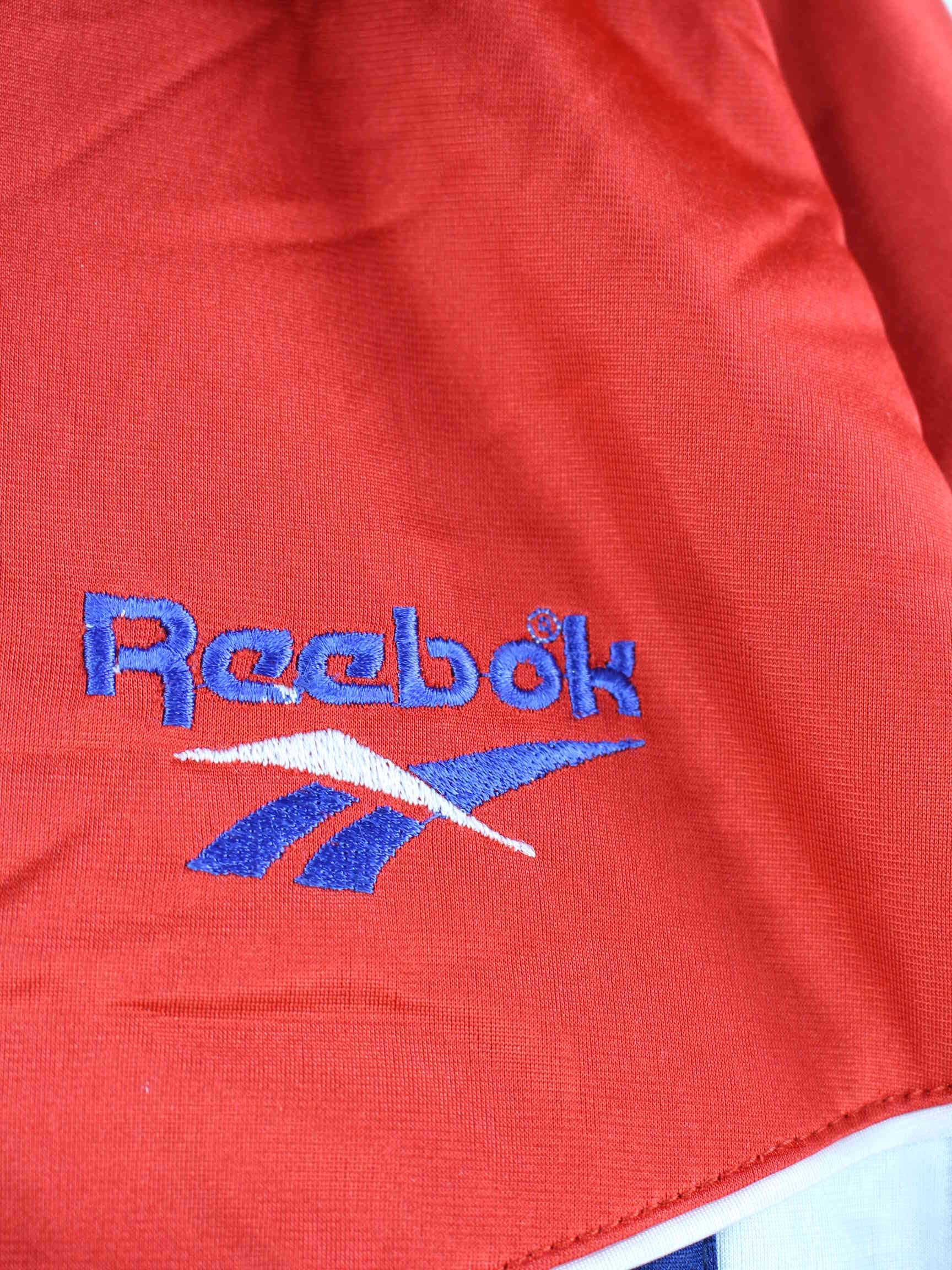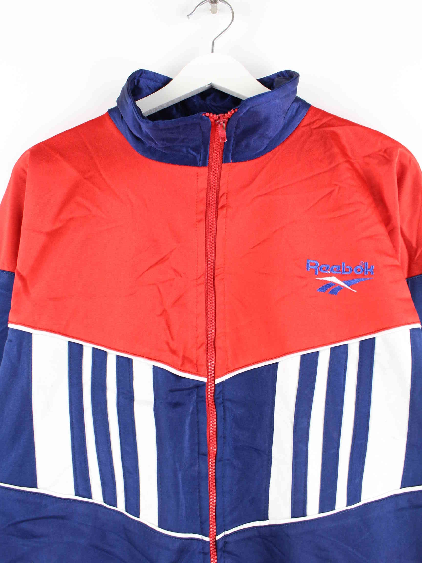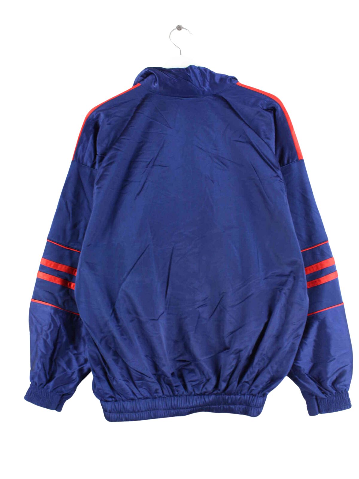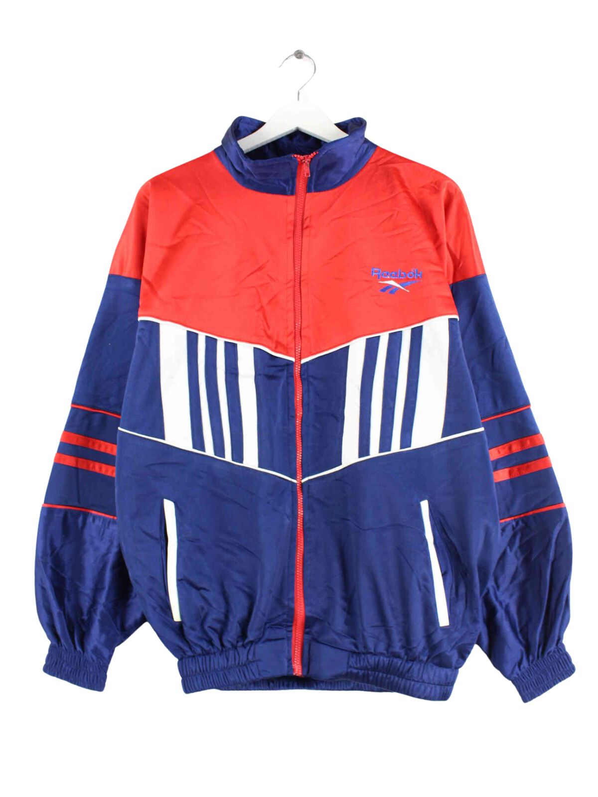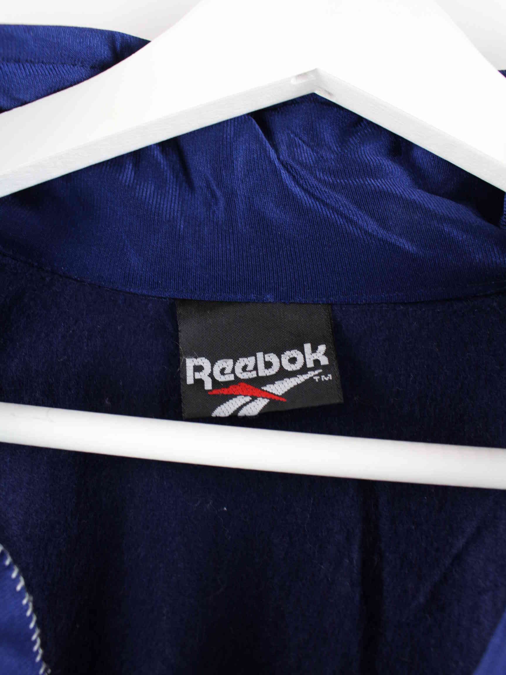 Blue training jacket from Reebok from the 90s in size L. It is made of synthetic material and is in stock in very good condition.